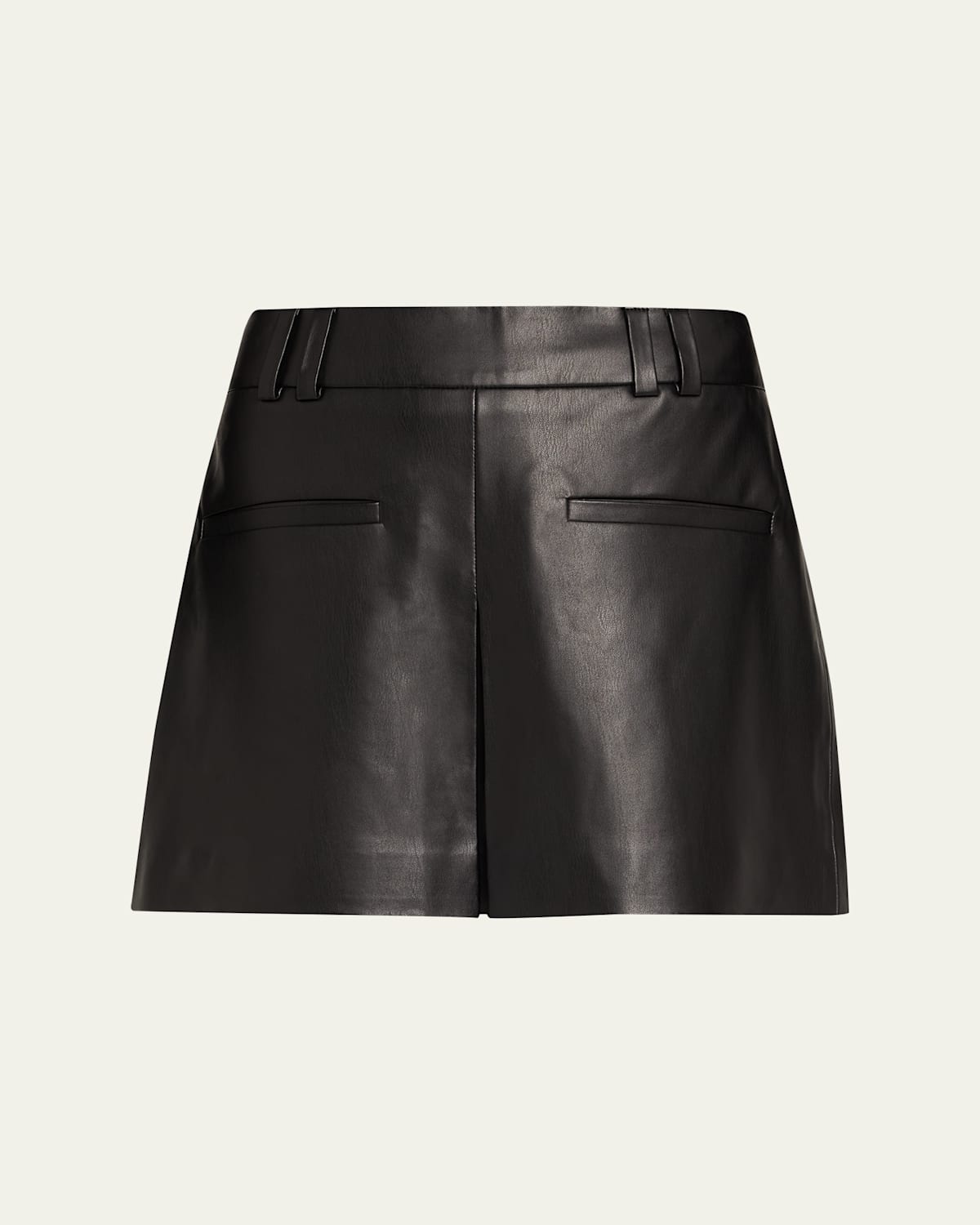 Crafted from smooth vegan leather, the "Pavaline" mini skirt by Veronica Beard boasts a tailored silhouette and front slit. High rise Front welt pockets Aline silhouette Hem falls above the knee Center back zip; belt loops Polyurethane/elastane Lining: Polyester Hand wash Imported