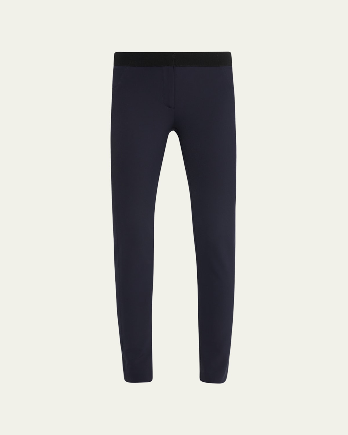 Veronica Beard leggings in scubastyle jersey. Approx. measurements: 9" rise; 10" leg openings; 27.63" inseam; 35.8" outseam (size small measured). Smooth, flat front. Skinny legs. Hook/zip front. Nylon/spandex/nylon; dry clean. Made in USA of Italian material.