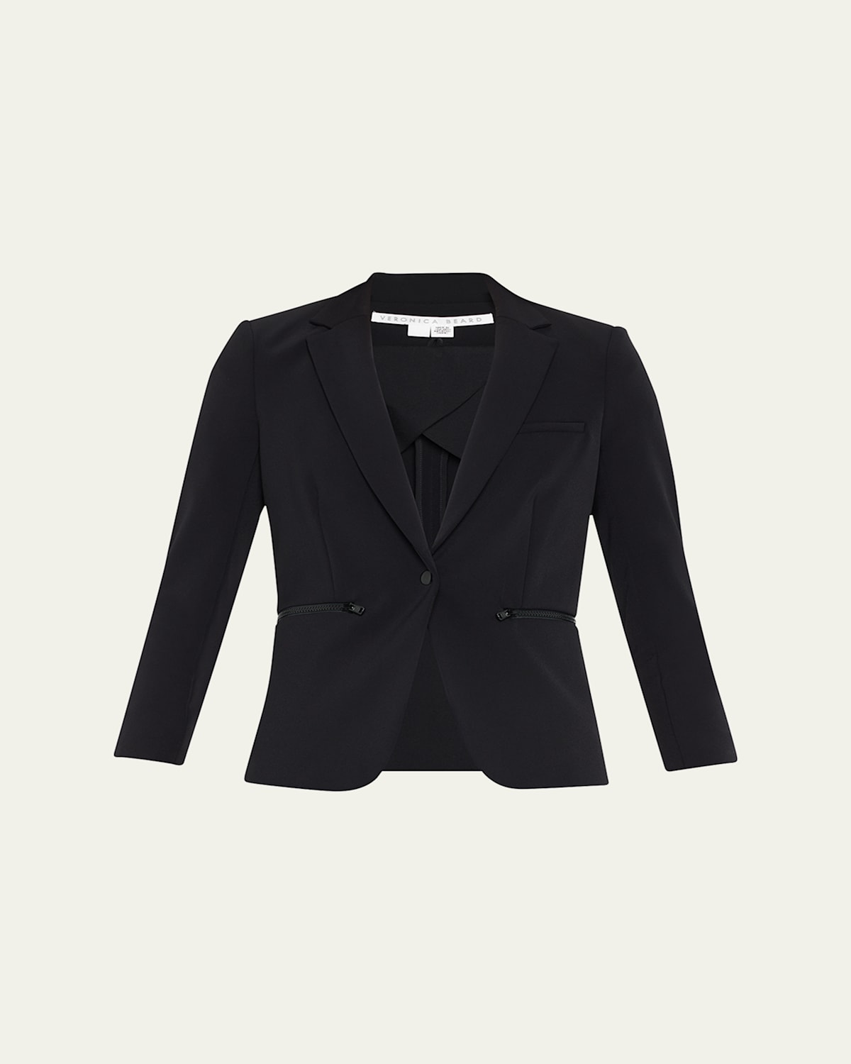 Veronica Beard "Scuba Schoolboy" blazer Approx. 23.3"L down center back. Notched collar; onesnap front. Threequarter sleeves. Zip and welt pockets Tailored fit Cutaway hem Nylon/spandex. Dry clean. Made in USA of imported material.