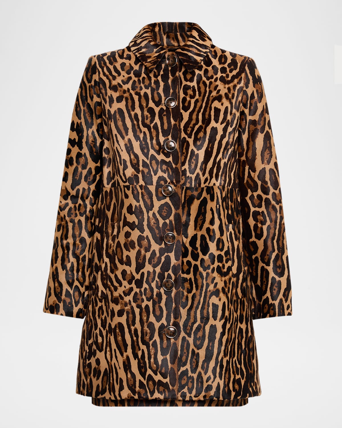 Veronica Beard "Shelley" dickey coat crafted in luxurious baby calf hair Compatible with Veronica Beard dickey's (sold separately) Point collar Singlebreasted front Long sleeves with button cuffs; approx. 32.8"L Side slip pockets Classic fit Midthigh length Buttonfront Animal hair Lining: Cupro Professional cleaning recommended Imported