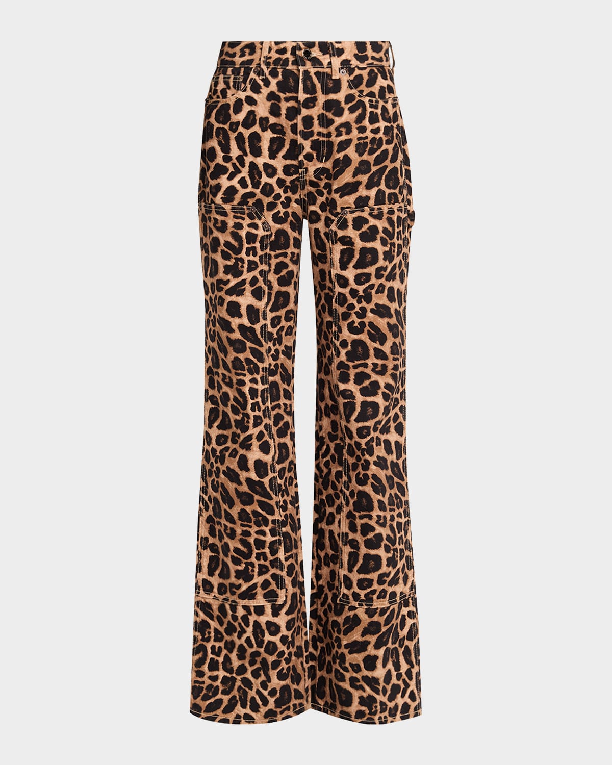 In one of the fall season's hottest prints, the "Taylor" leopard jeans by Veronica Beard feature panel detailing for a Westerninspired chap effect. Approx. 12" rise; 32.5" inseam High rise Fivepocket style Wide legs Full length Button/zip fly; belt loops Cotton Machine wash cold inside out Imported