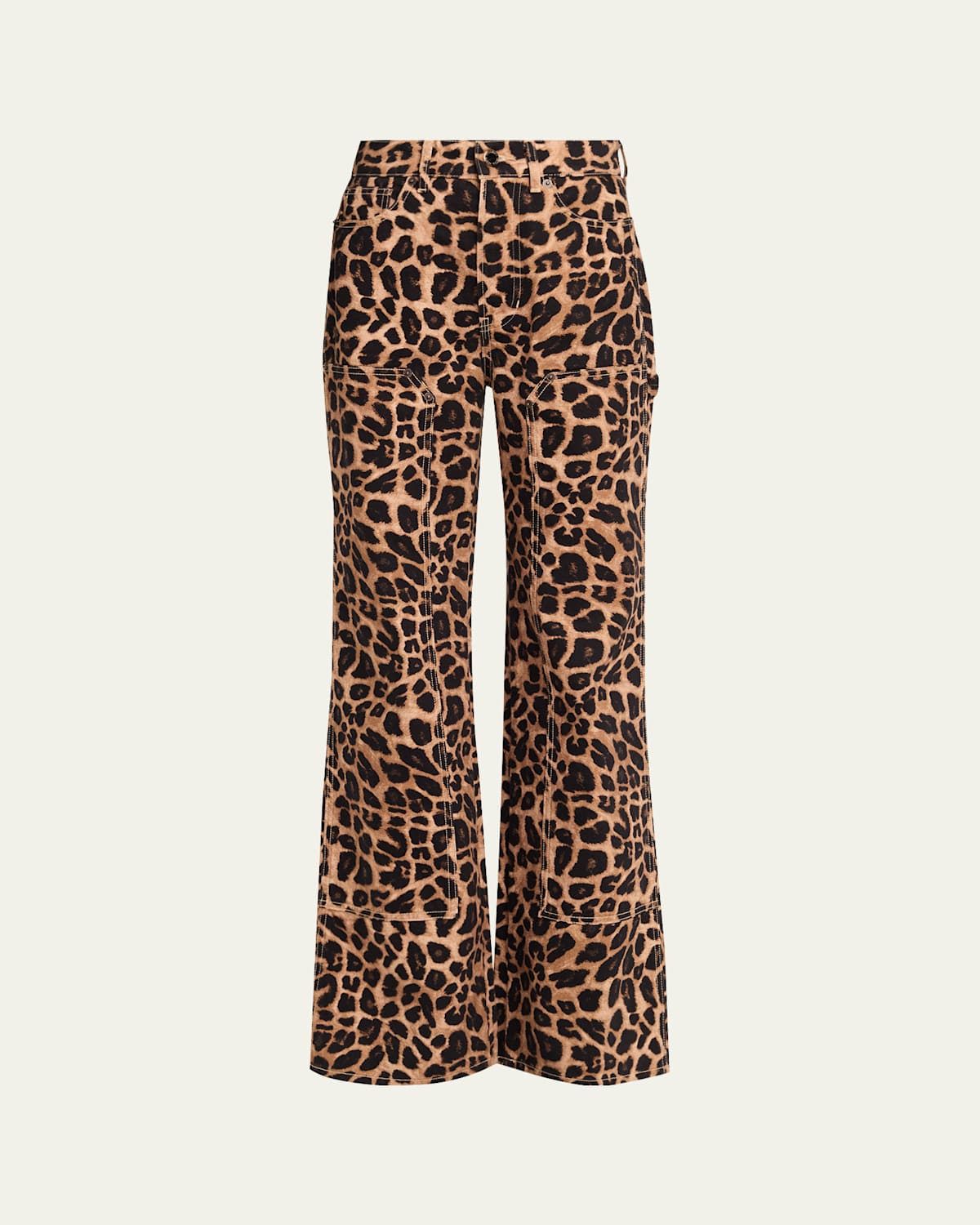 In one of the fall season's hottest prints, the "Taylor" leopard jeans by Veronica Beard feature panel detailing for a Westerninspired chap effect. Approx. 12" rise; 32.5" inseam High rise Fivepocket style Wide legs Full length Button/zip fly; belt loops Cotton Machine wash cold inside out Imported