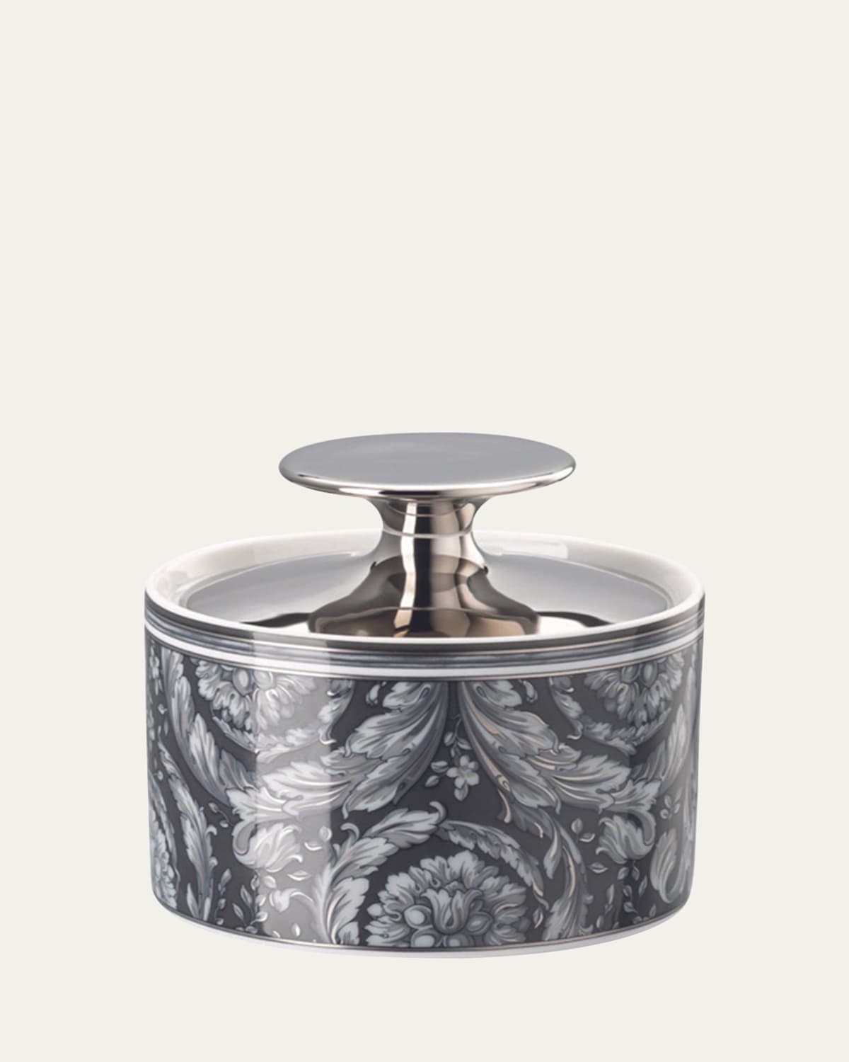 Baroque flowers and plants find visual representation in the new tableware collection by Rosenthal Meets Versace, Barocco. Taking its symbolism in Ancient Greek and Baroque art, the Barocco décor was introduced by Versace in 1991. With an artful arrangement of ornaments, the new series sets the scene for modern dining with the darker "Haze" nuances. Crafted of porcelain Approx. 3.6"Dia. x 3.2"T Capacity, 6 oz. Dishwasher safe Not for use in microwave Made in Germany