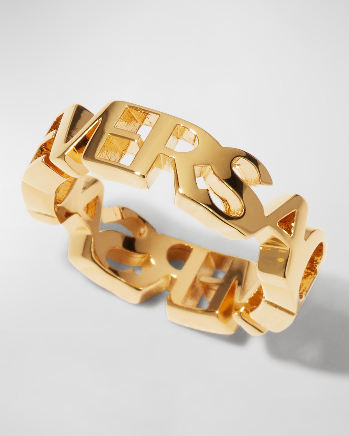 Versace band ring Approx. 0.24"H Goldtone brass Polished finish Made in Italy