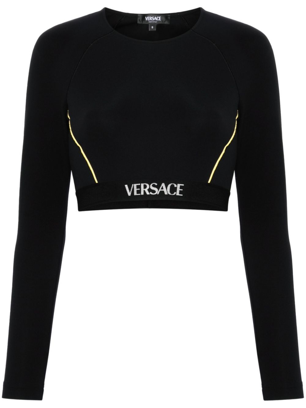 black stretch-design elasticated logo waistband round neck long sleeves cropped contrasting trim