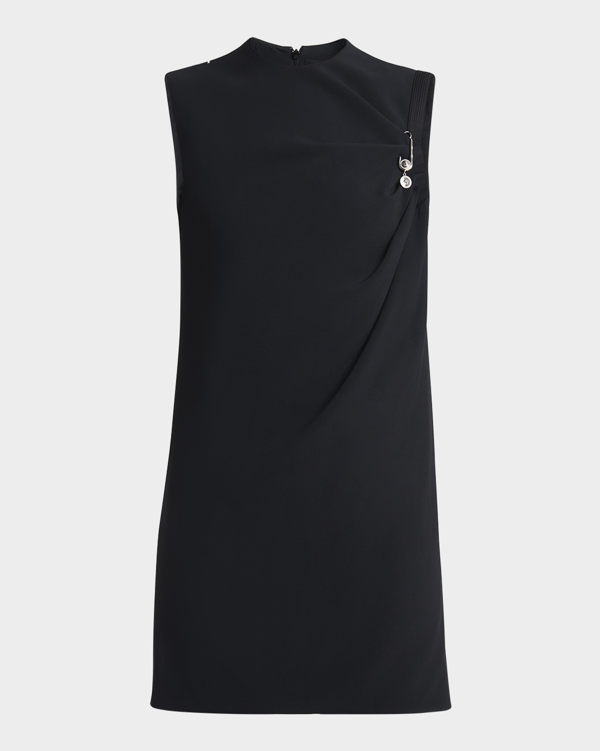 Versace responsible matte enver satin dress featuring draping and a signature Medusa safety pin Round neckline Sleeveless Shift silhouette Mini length Invisible back zip Acetate/viscose Lining: Acetate/silk Professional cleaning recommended Made in Italy