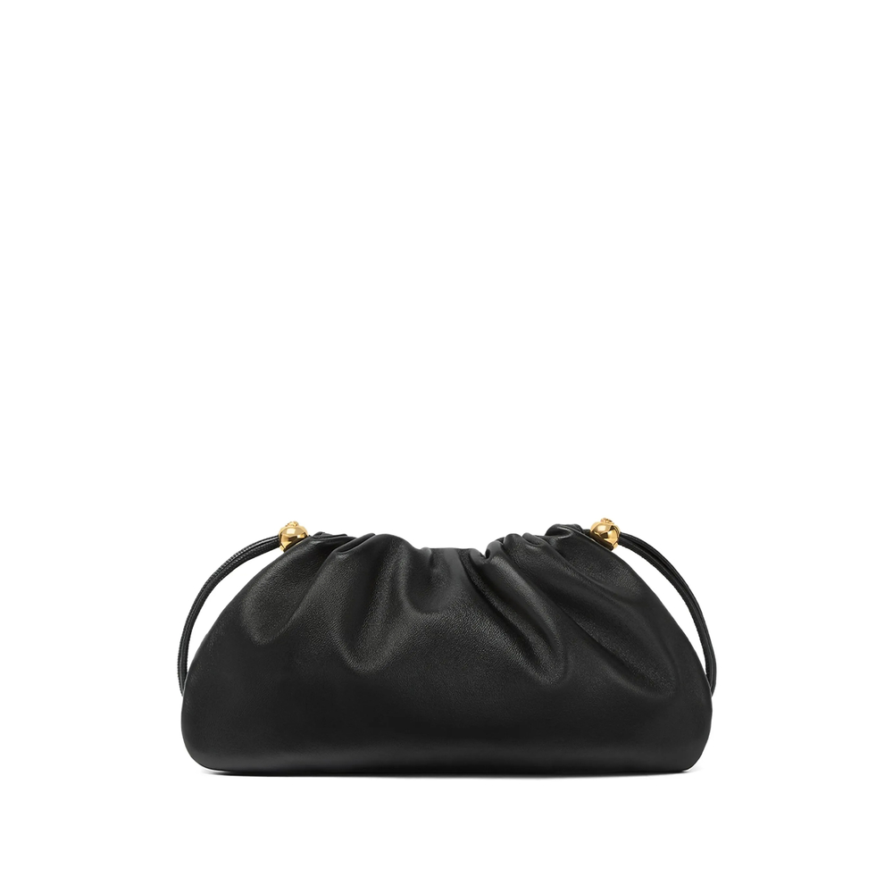black drawstring closure gold-tone hardware gathered detailing embossed logo