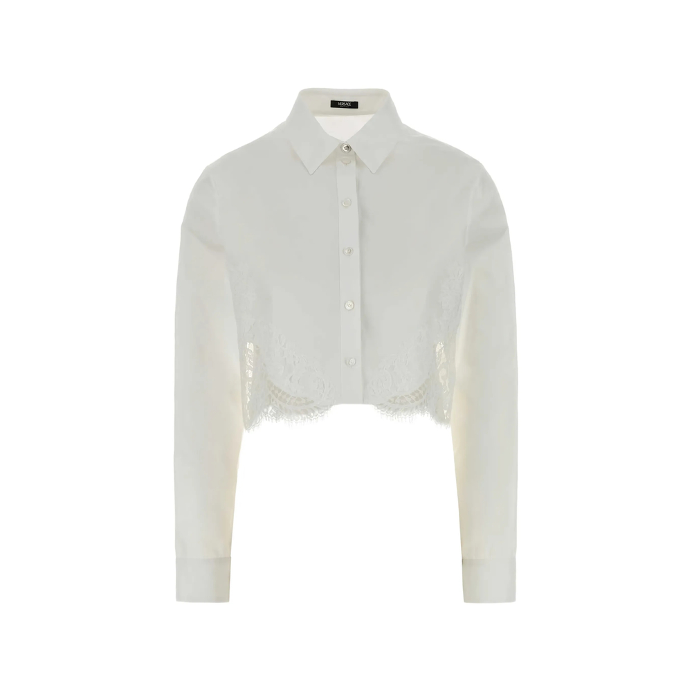 white cotton lace detail button fastening long sleeves cropped