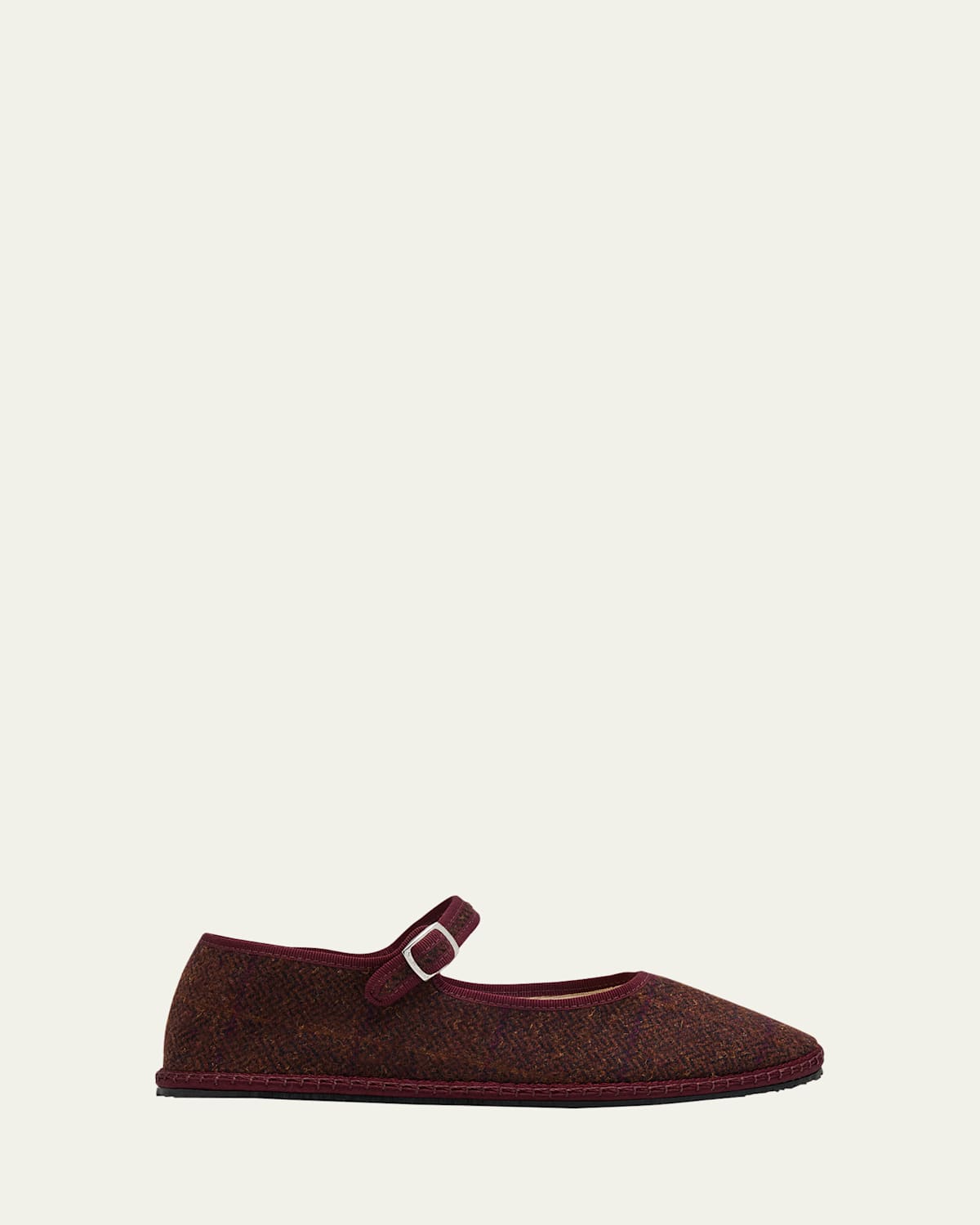 These lightweight flats by Vibi Venezia are crafted from woolblend tweed with grosgrain trim Flat heel Round toe Mary Jane buckle strap Upper: Polyester/wool Cotton lining Rubber outsole Made in Italy