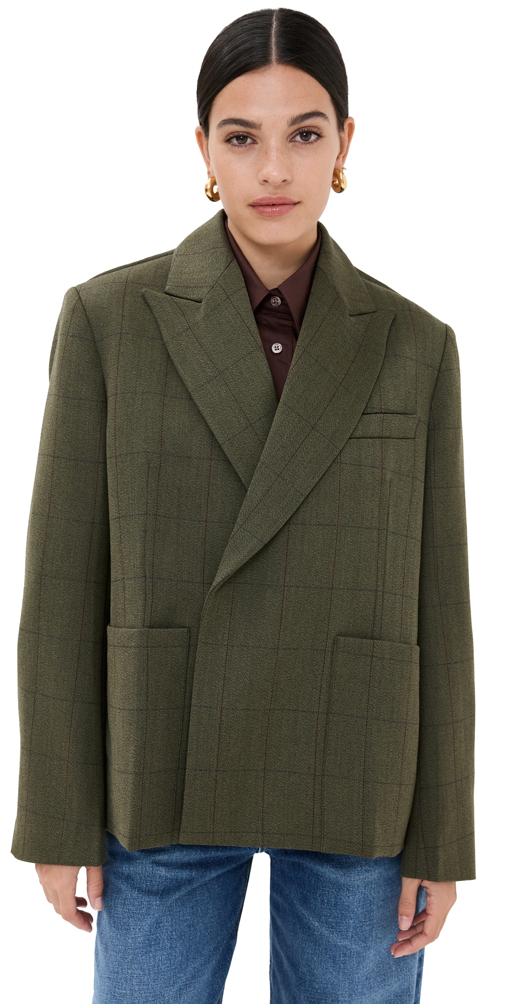 Double Breasted Slant Shoulder Jacket Dark Fern
