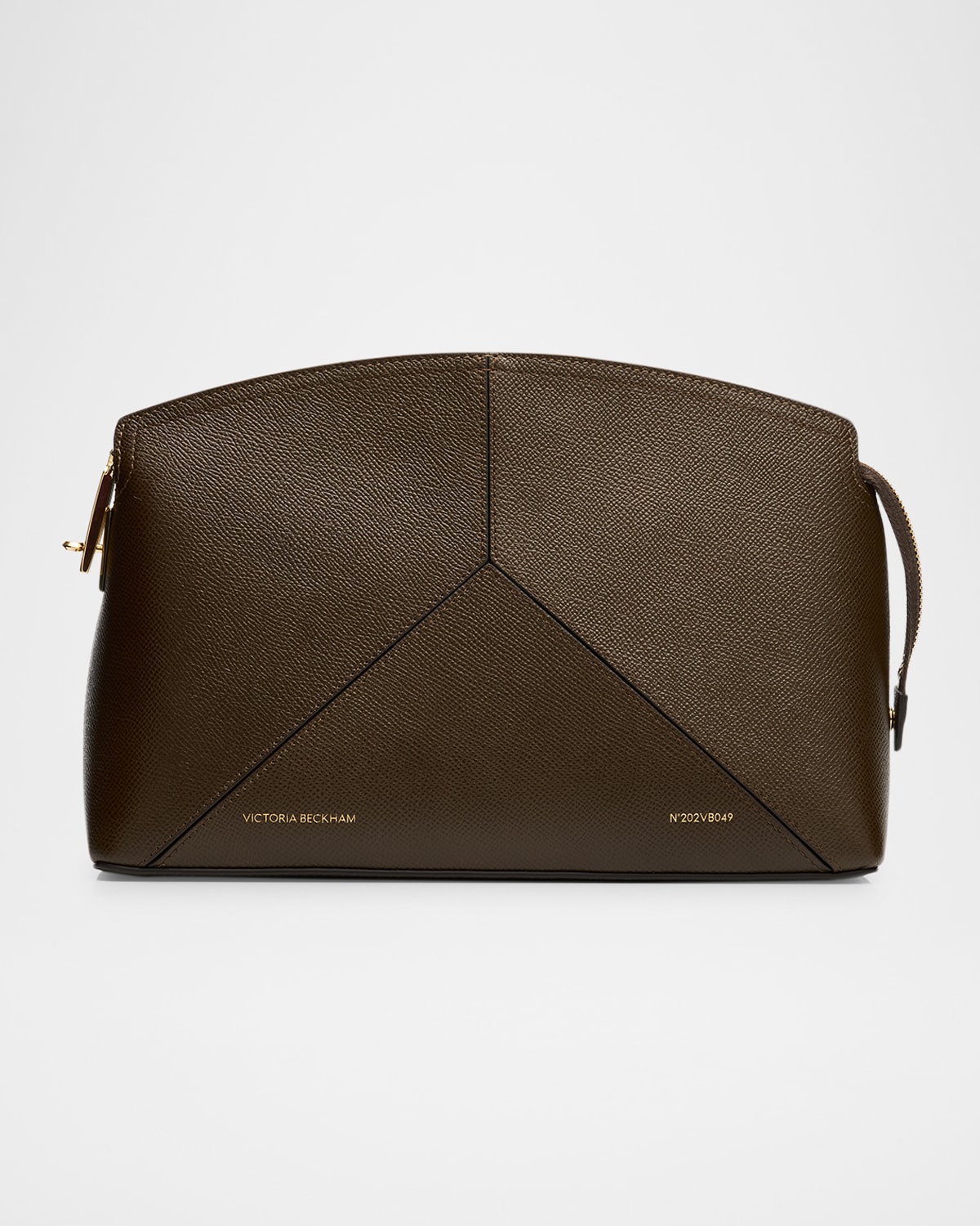 Victoria Beckham "The Victoria" clutch bag in leather Zip top closure with tab turnlock closure Interior, one slip pocket Approx. 7.4"H x 11"W x 3.5"D Made in Italy
