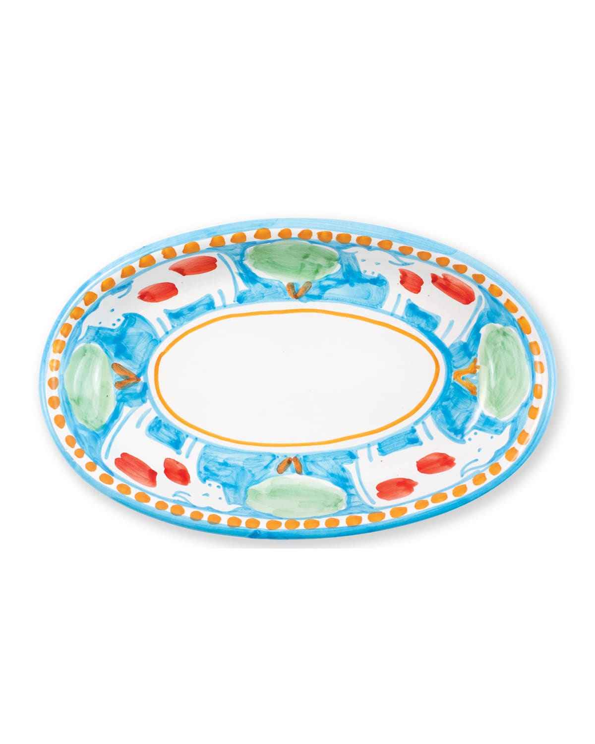 The Campagna Mucca Small Oval Tray features a whimsical handpainted cow and is part of our flagship dinnerware colllection from the famed Amalfi Coast. Handpainted small oval tray. Made of terra cotta. Approx. 10"L x 6.5"W Made in Italy.
