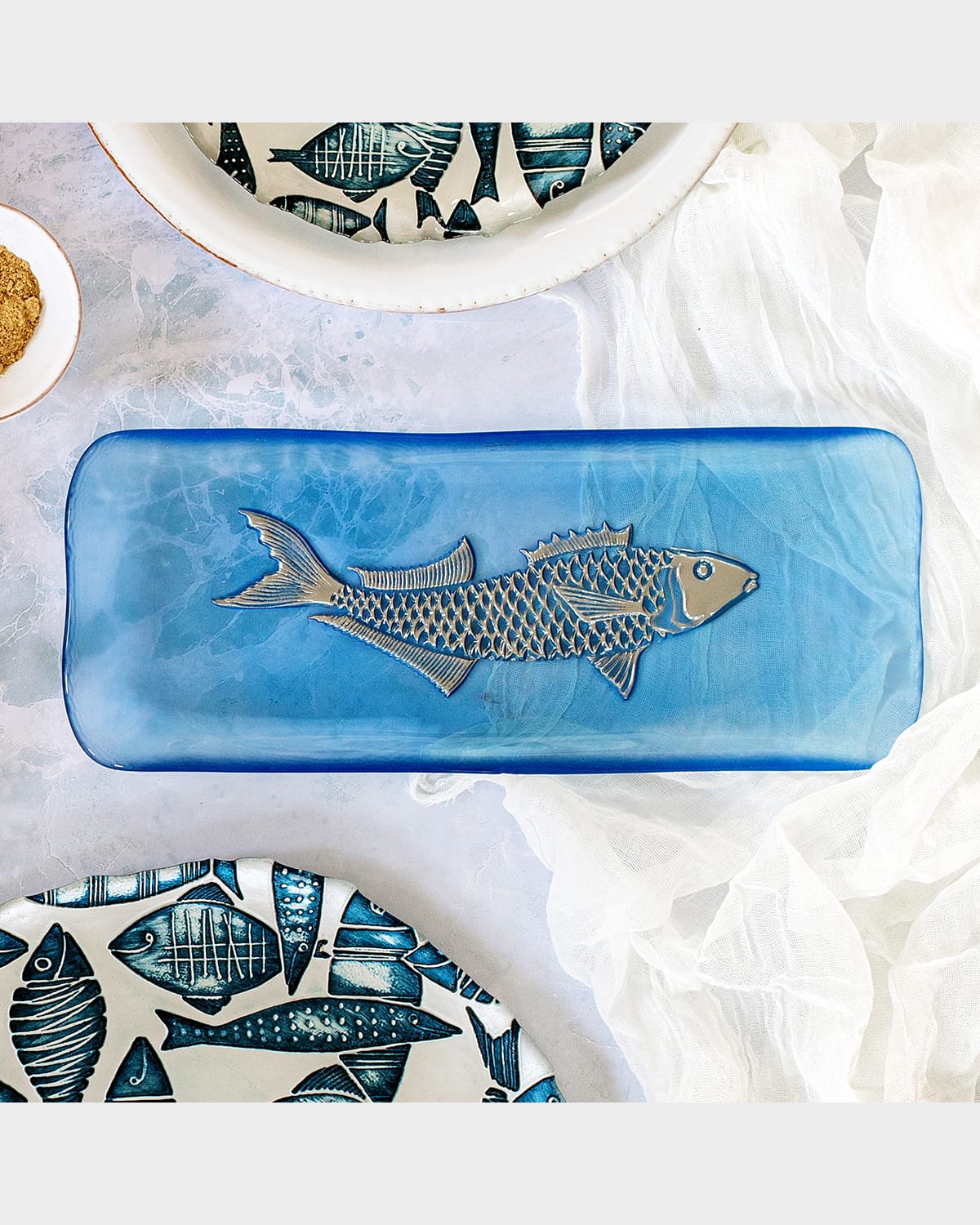 Inspired by sea creatures and the soft blue of the ocean, the Isola Glass collection brings a sophisticated layer of coastal charm to your home. Handcrafted of glass Approx. 12.5"L x 5"W x 0.8"T Item Weight (Lbs.): 1.7 Hand wash Imported