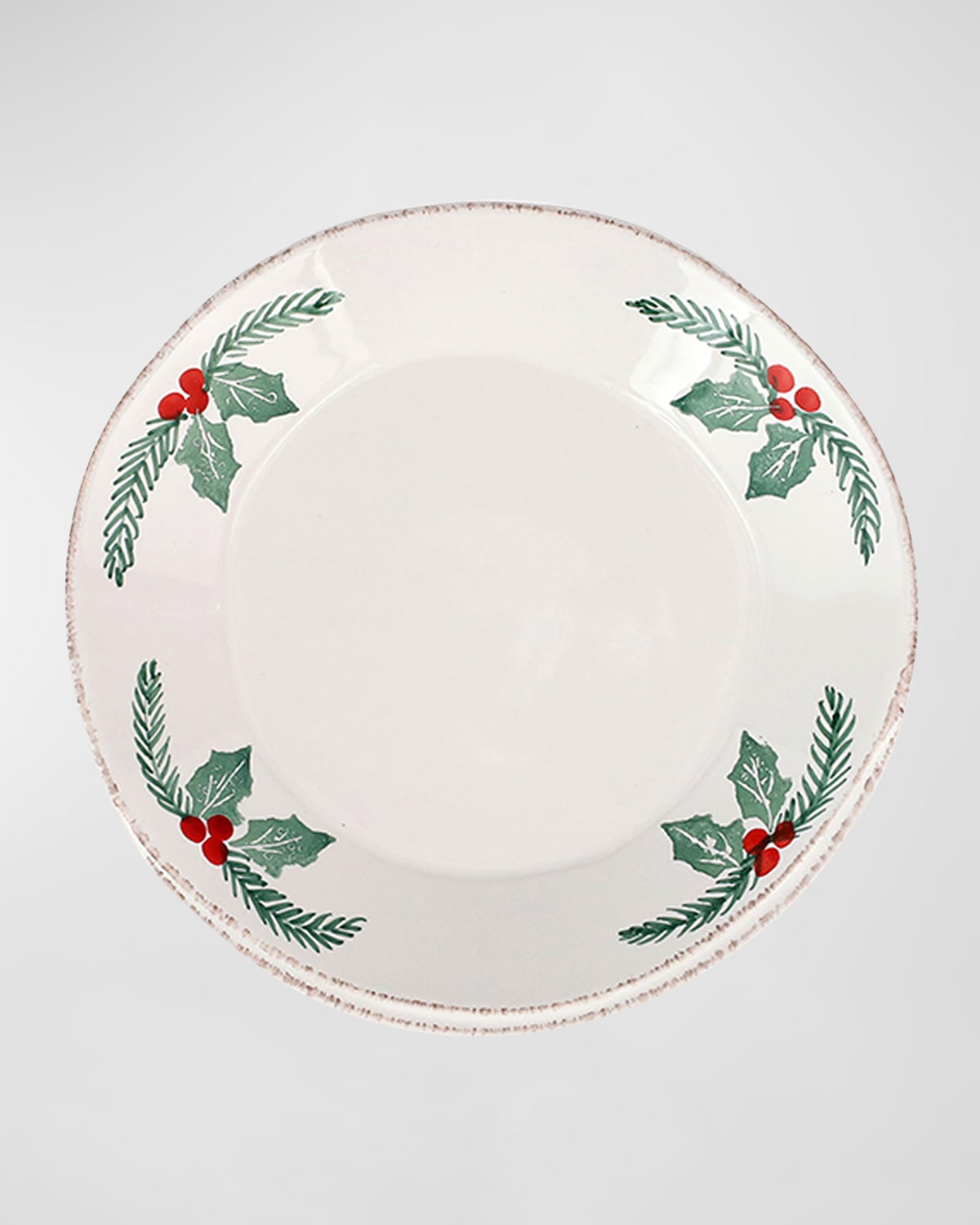 The Lastra Evergreen Pasta Bowl features handpainted greenery and holly berries on a rich white background. The classic holiday color palette feels fresh on the rustic, handformed shapes, and the collection is at once elegant, artistic, and joyous. Handcrafted of Italian stoneware Approx. 8.8"Dia. Sold individually. Size (ounces): 18 oz Item Weight (Lbs.): 1.1 Made in Italy