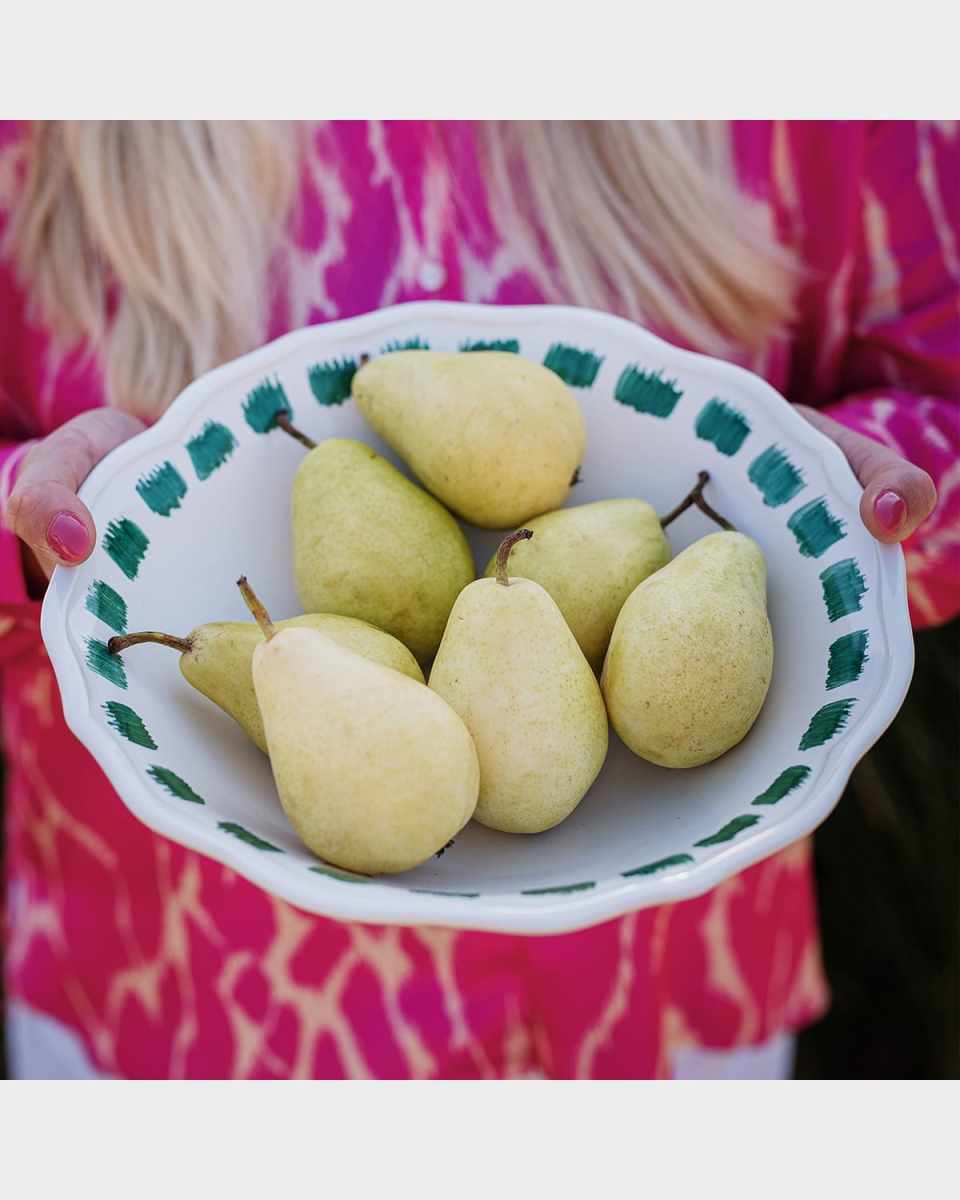 Create a confident, colorful table with the Viva Lisbon collection. Made to be mixed and matched, these unique designs invite each person to bring their own vibrant touch and unique style to the table. Serving bowl handcrafted of ceramic with green stitched glossy finish Approx. 11"L x 11"W x 3.3"T Size (ounces): 64 Item Weight (Lbs.): 2.1 Dishwasher and microwave safe Made in Portugal