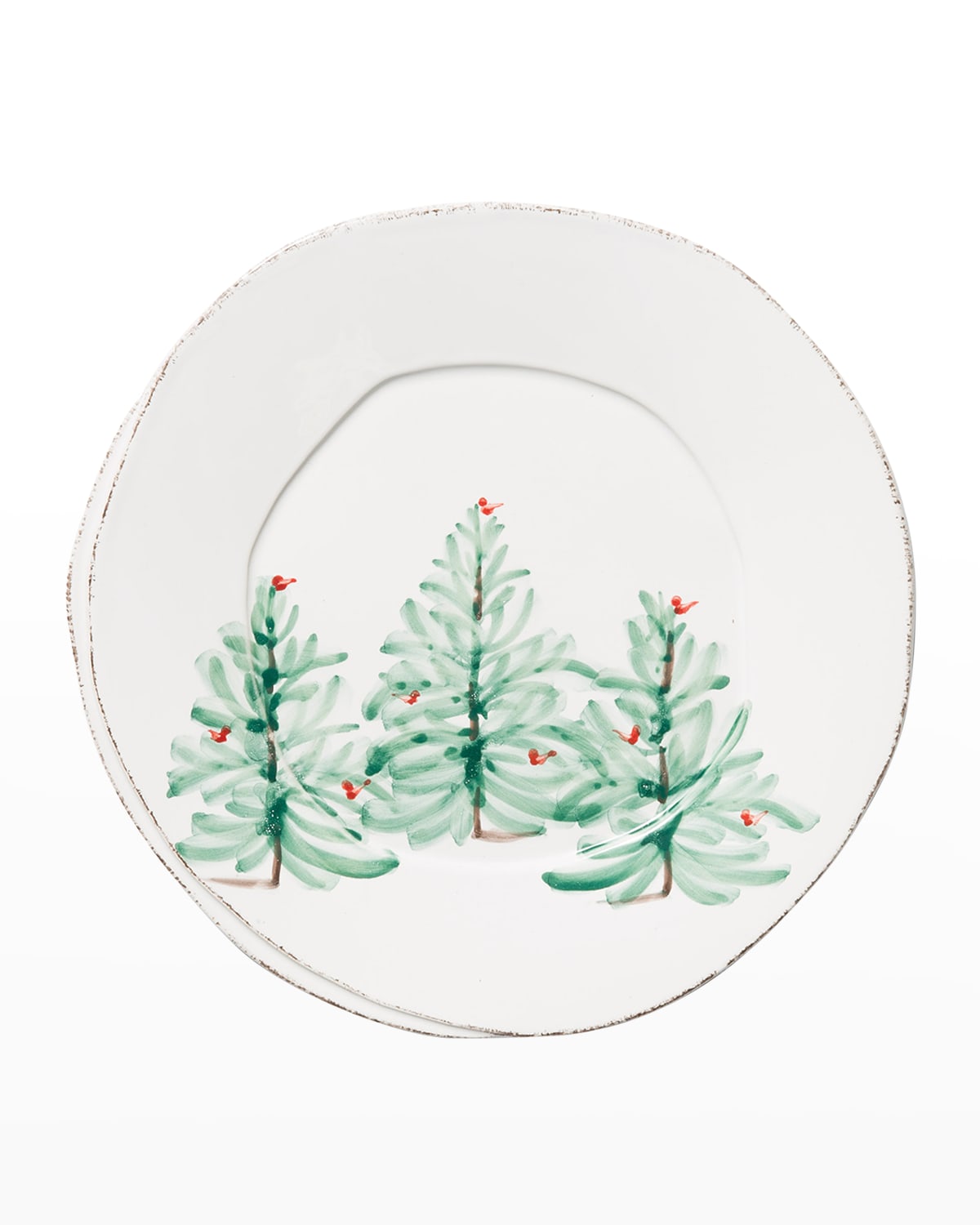 Lastra Holiday's unique silhouettes and cheerful design take a new form on the Melamine Lastra Holiday Dinner Plate Delight in the magic of the holiday season as handpainted fir trees and red birds drift across the fresh white canvas of each piece Made of lightweight, durable melamine Approx. 11"L x 11"W x 1.5"T Dishwasher safe Imported