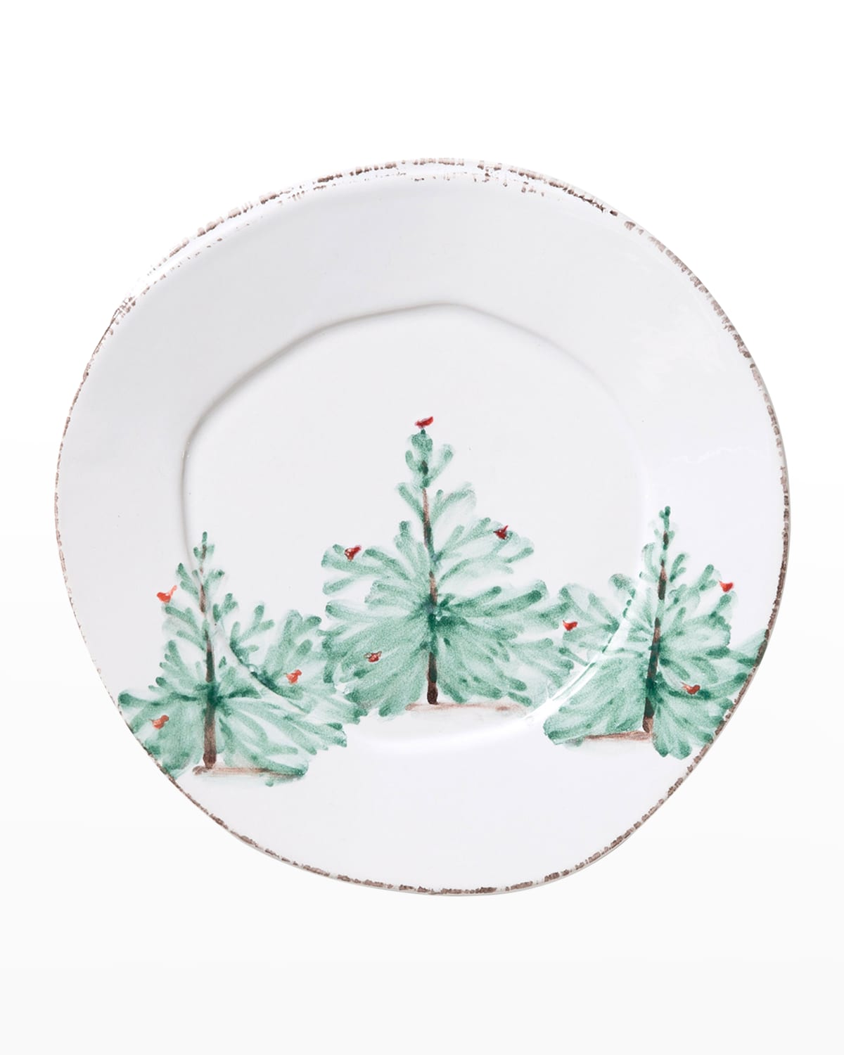 Lastra Holiday's unique silhouettes and cheerful design take a new form on the Melamine Lastra Holiday Salad Plate Delight in the magic of the holiday season as handpainted fir trees and red birds drift across the fresh white canvas of each piece Made of lightweight, durable melamine Approx. 8.8"L x 8.8"W x 1"T Dishwasher safe Imported
