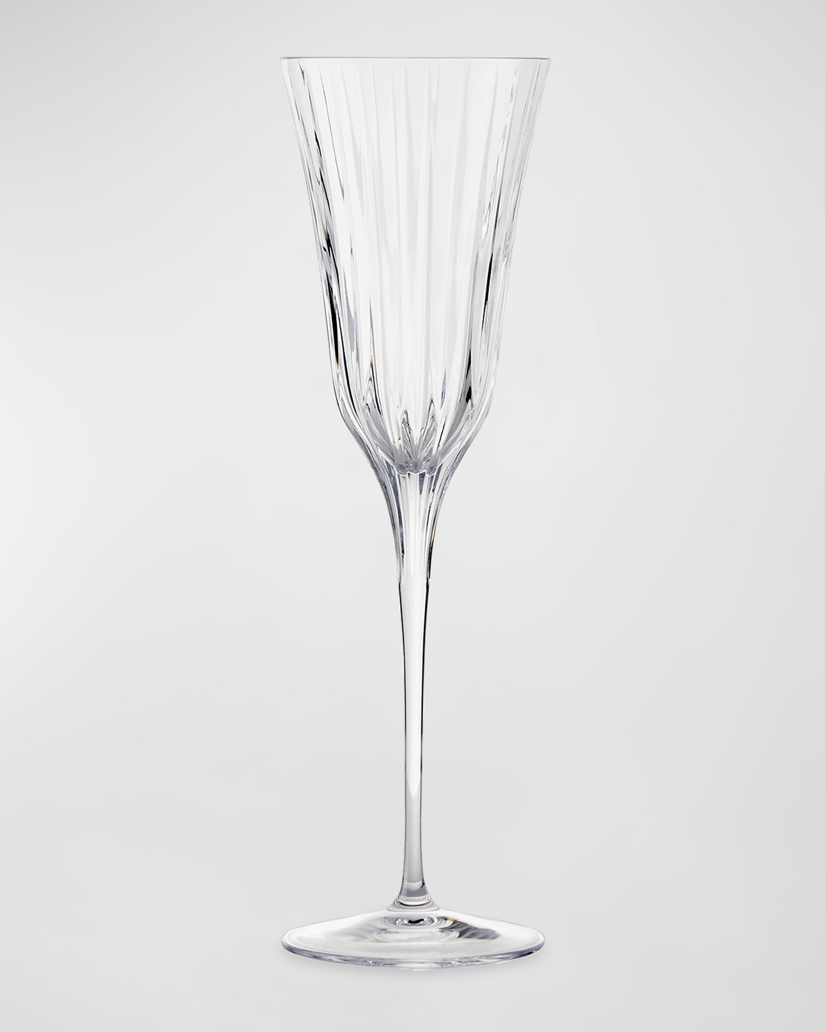 Champagne flute is made of etched glass. Holds approx. 7 oz. Approx. 9.8"T. Dishwasher safe. Made in Italy.