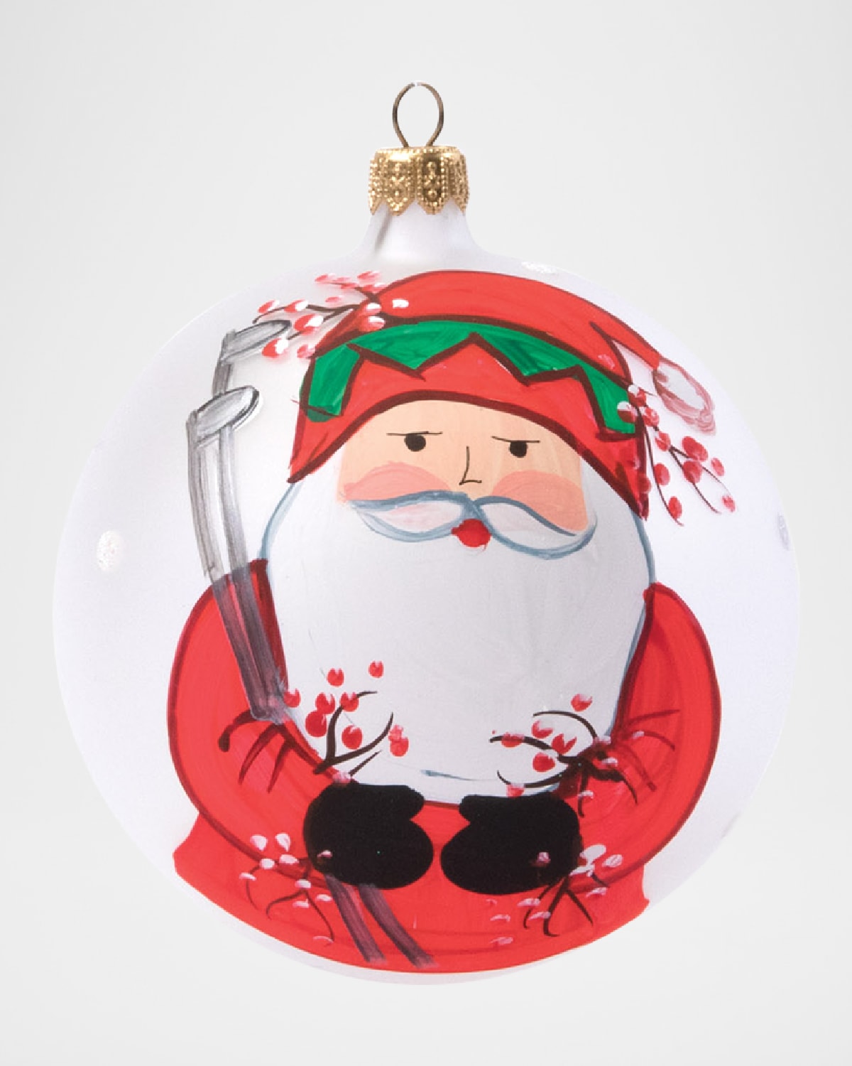 Help jolly Old St. Nick celebrate this holiday season when you gift the Old St. Nick Golfing Ornament. This signature holiday collection was inspired by maestro artisan Alessandro Taddei's childhood memories of Babbo Natale, Italy's Santa Claus. Made of mouthblown glass Approx. 4"Dia. Item Weight (Lbs.): 0.2 Wipe clean with damp cloth Made in Italy