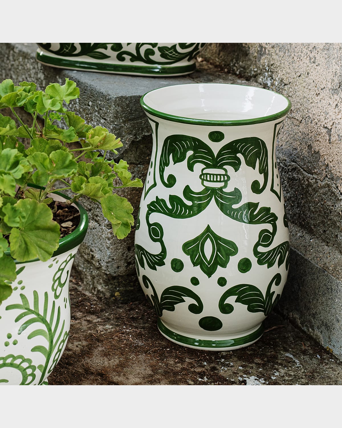 Bold and crisp, Verde garden features painterly brushstrokes in rich shades of green. These pieces take their inspiration from historic Italian designs making them perfect for both contemporary or traditional homes. Handcrafted of earthenware Approx. 12"Dia. x 20"T Item Weight (Lbs.): 21.1 Wipe clean Made in Italy