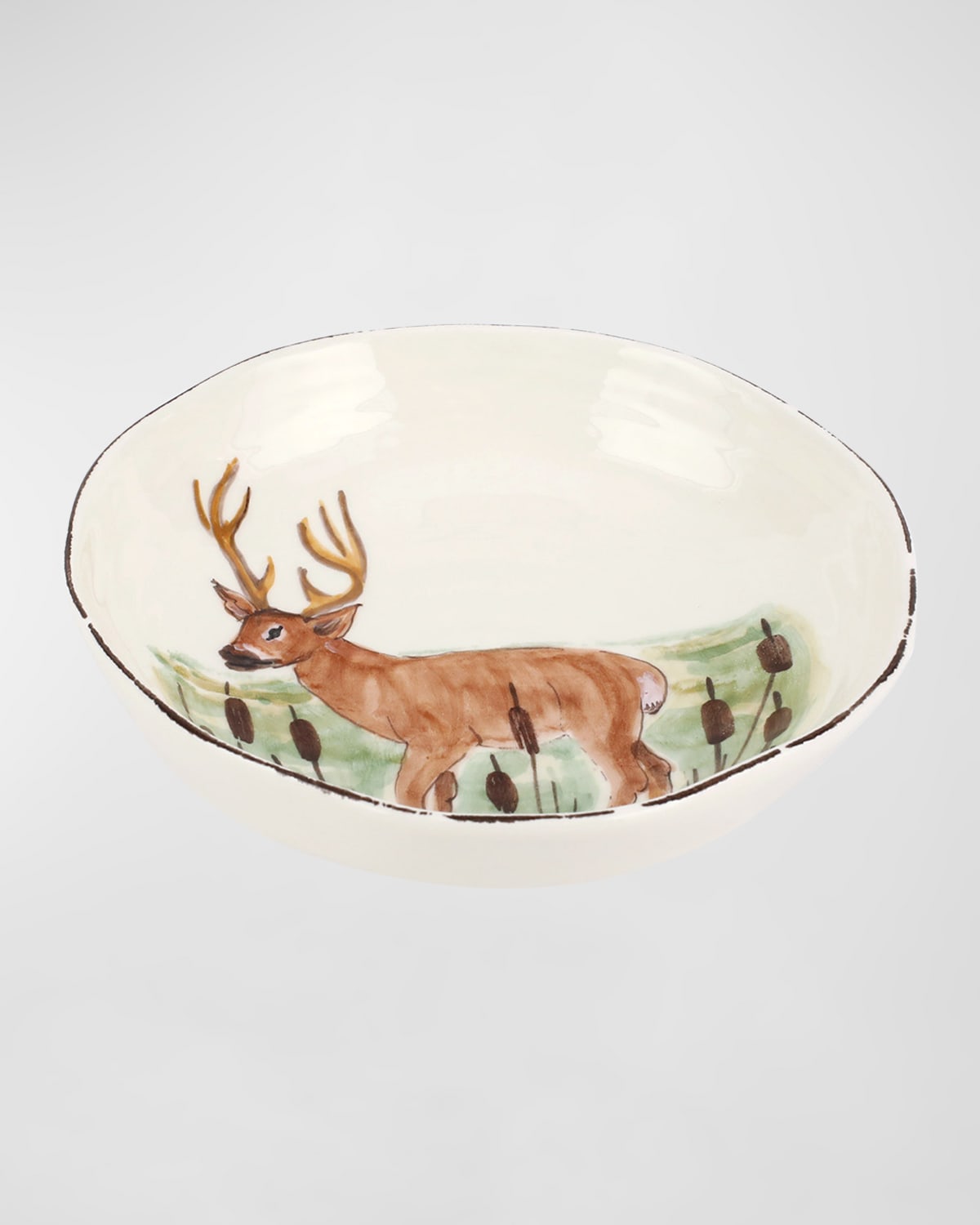 Handpainted in Tuscany and an instant classic for everyday dining, the Wildlife Deer Pasta Bowl brings the grandeur and beauty of the outdoors to your table with exceptional detail and craftsmanship. Handcrafted of quartzite Approx. 8.5"Dia. x 2"T Item Weight (Lbs.): 1.2 Dishwasher and microwave safe Made in Italy