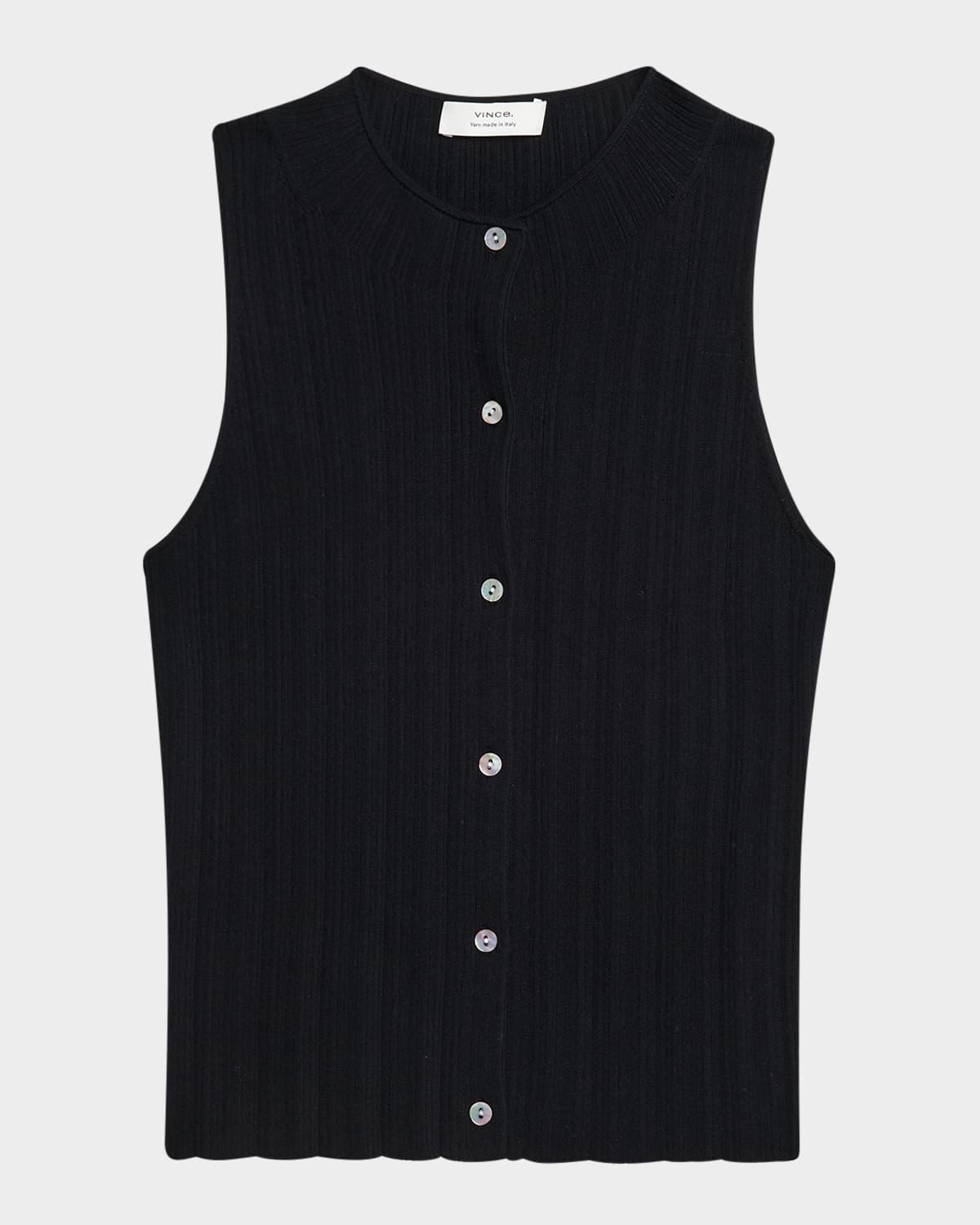 Vince buttonfront ribknit sweater Crew neckline Sleeveless Classic fit Hem sits at the hip Cotton/nylon/polyamide/spandex Dry clean or hand wash Imported