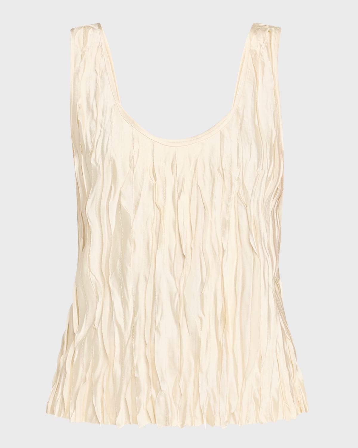 Vince textural tank top in crushed satin Approx. 22.5"L from shoulder to hem Scoop neckline Sleeveless Relaxed fit Pullover style Polyester Do not iron, dry clean, hand wash Imported