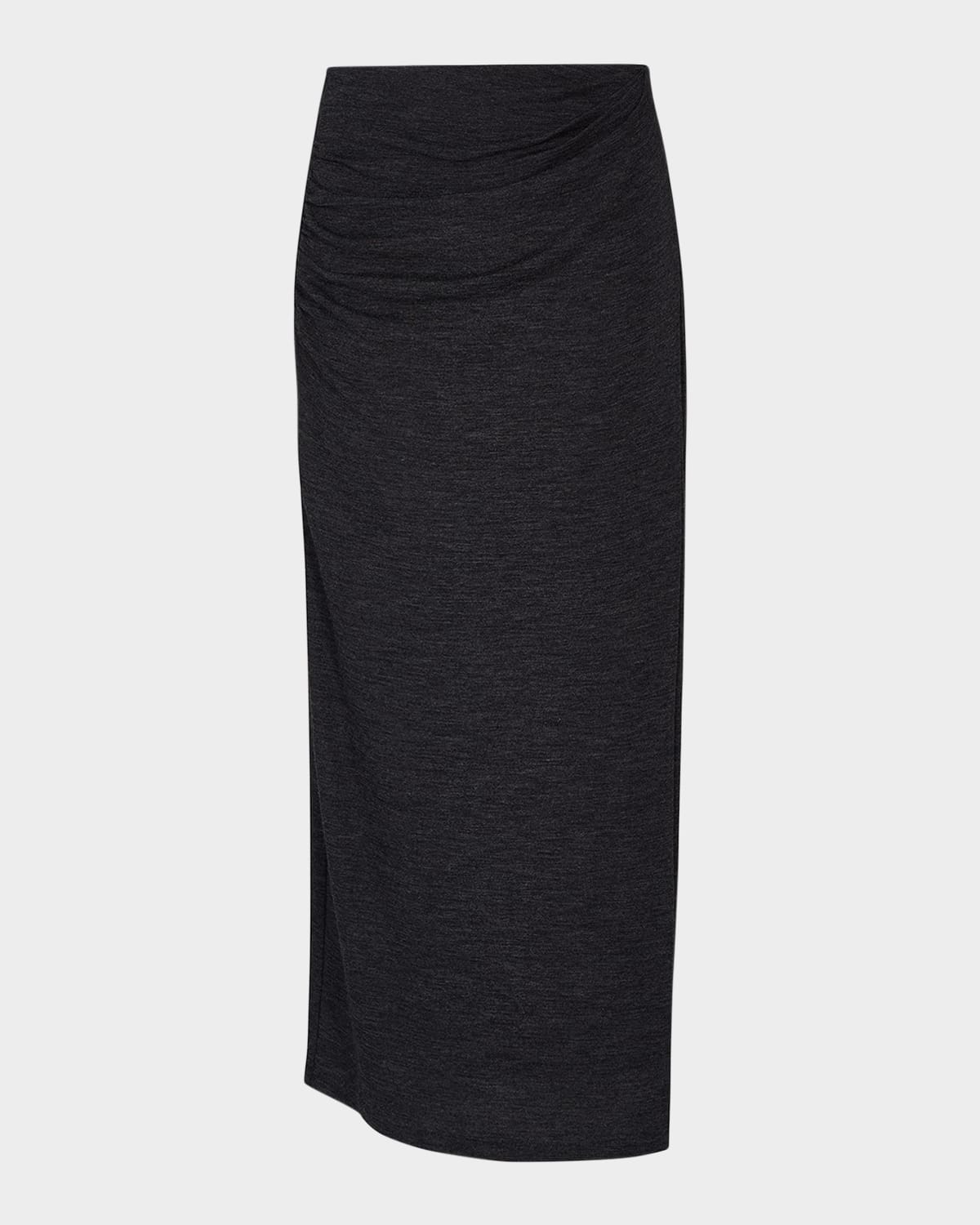 Woolblend midi skirt with flattering draping by Vince. High rise Wrap silhouette Hem falls below the knee Pullon style Wool/acrylic Hand wash or dry clean Imported