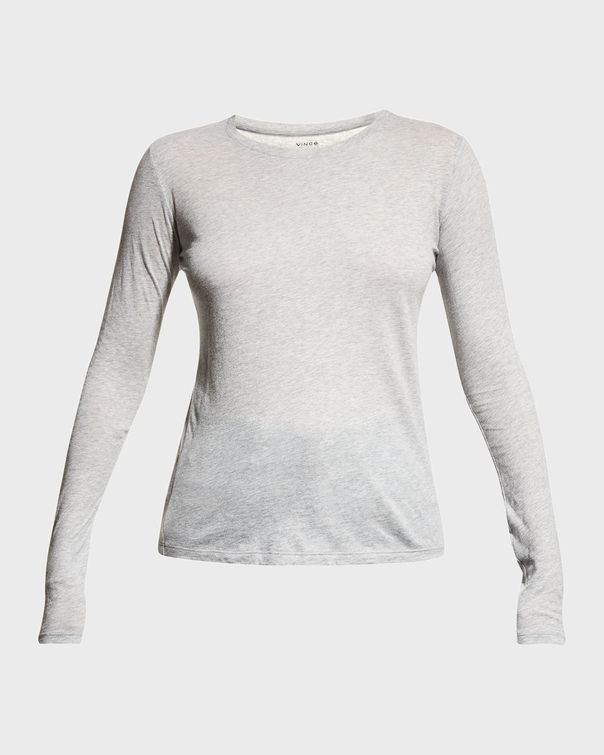 Vince tee in cotton. Approx. 24"L down center back. Crew neckline. Long sleeves. Slim fit. Pullover style. Pima cotton. Hand wash. Made in Peru.