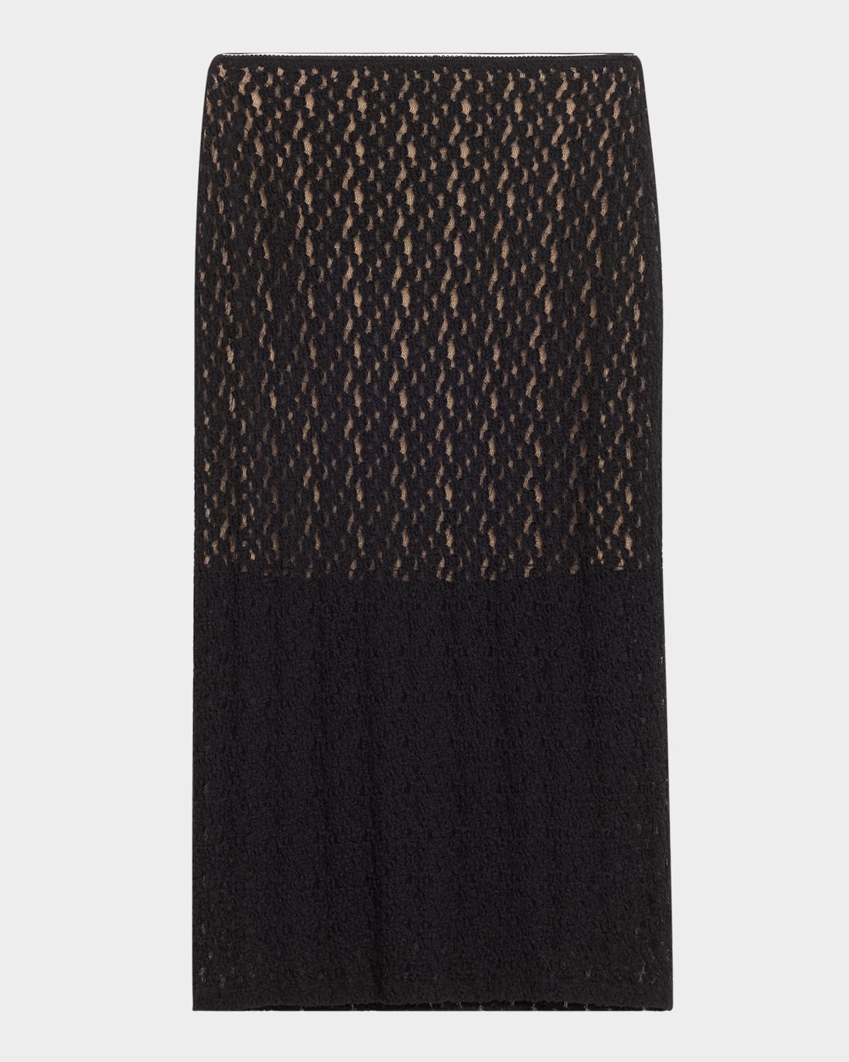 Featured in a smocked floral motif, the Vince midi skirt is finished with a tonal mini underlay Sits on the natural waist Hem falls below the knee Straight silhouette Slipon style Nylon/cotton/spandex Imported
