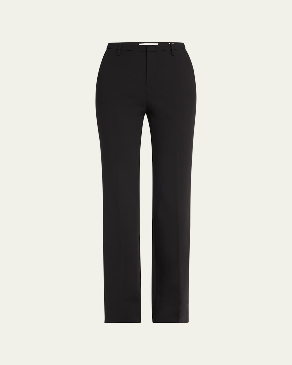 Vince classic pants tailored with pintucks Mid rise Flat front Side slip pockets; back welt pockets Full length Flared legs Hookandbar; zip closure Polyester/viscose/elastane Imported