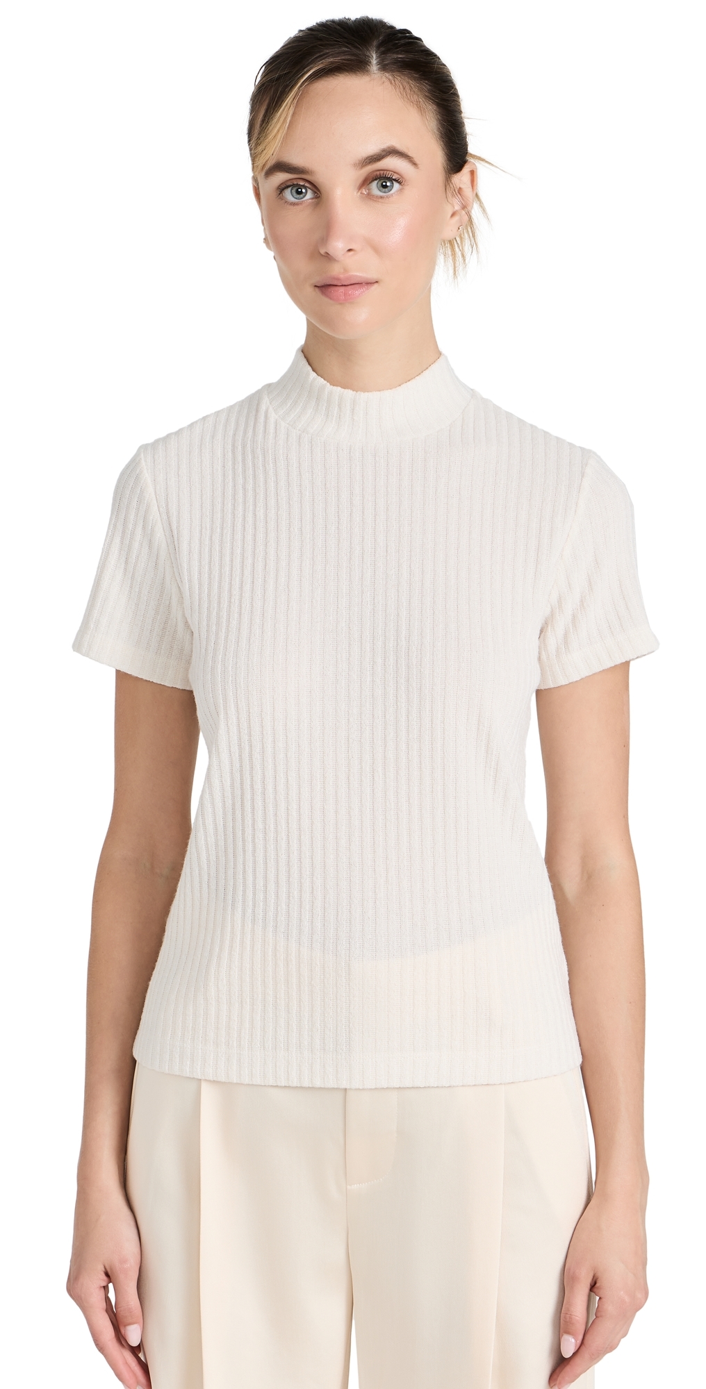 Fabric: Lightweight, ribbed knit. Mock neck and short sleeves. Shell: 69% polyester/27% rayon/4% spandex. Wash cold or dry clean. Imported, Vietnam. Measurements: Measurements from size S Length: 21.25in / 54.0cm, from shoulder