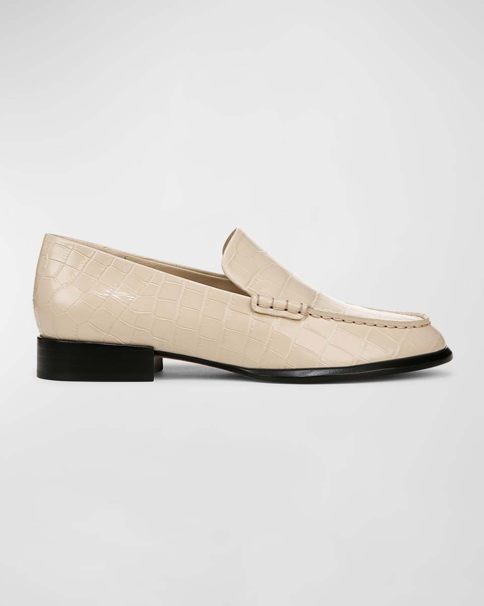 Vince "Naomi" effortless and understated, our timeless loafer is crafted in glossy crocodileembossed leather with a low stacked heel for a light lift. 0.75 in / 20 mm flat heel Round moc toe Notched vamp Slipon style Leather outsole Lining: Leather Professional cleaning recommended Imported