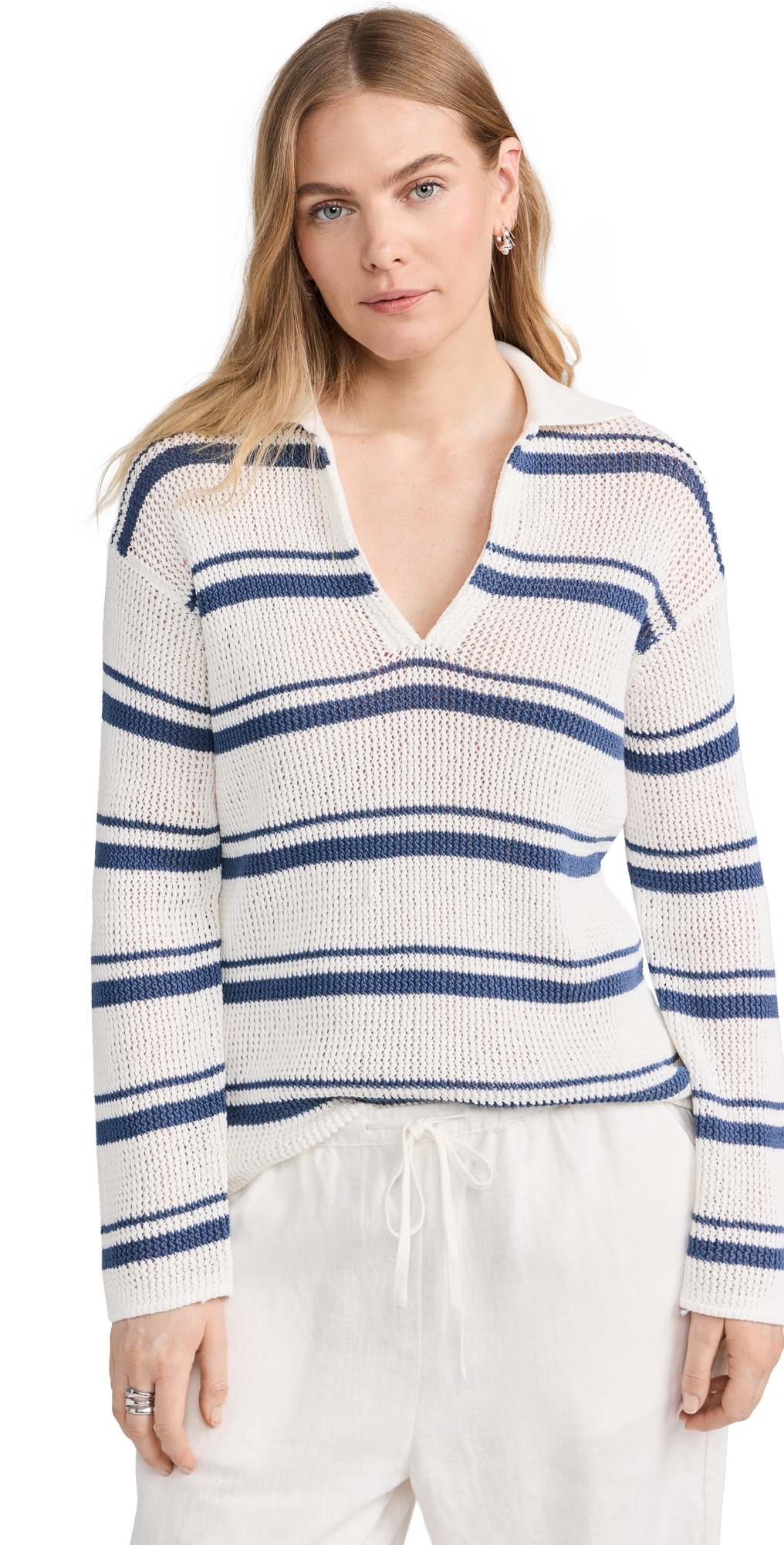 Fabric: Mid-weight knit. Striped pattern. Collared neck. Long sleeves with dropped shoulders. Shell: 100% cotton. Wash cold. Imported, China. Measurements: Measurements from size M Length: 22.75in / 58.0cm, from shoulder