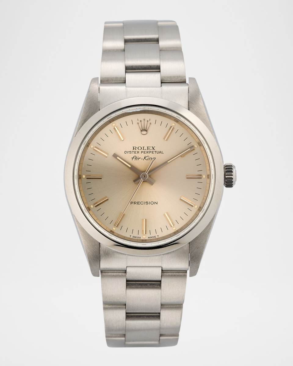 AirKing Precision watch by Rolex Approx. 34mm round screwdown case Stainless steel case and bracelet Silver dial with luminous dot and slash markers Baton hands and sweep seconds Sapphire crystal window Rolex oyster bracelet with folding clasp Reference #14000 Caliber 3000 27jewel automatic movement #4582547 Circa 1991 Each Vintage Watch purchase includes a Neiman Marcus watch box and Neiman Marcus certificate of authenticity. Original box and papers are not offered in most instances, and will be noted on the site when they are. Made in Switzerland