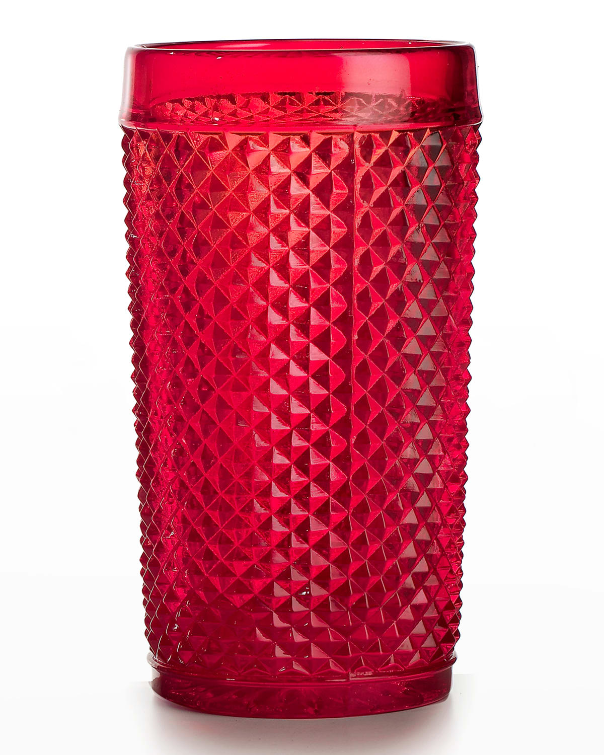"Bicos" highball glasses are handmade one at a time by artisans using century old pressed glass techniques. Made of leadfree glass. Set of four. Each, 3.4"Dia. x 6.7"T; holds about 9.5 oz. Dishwasher safe. Made in Portugal.