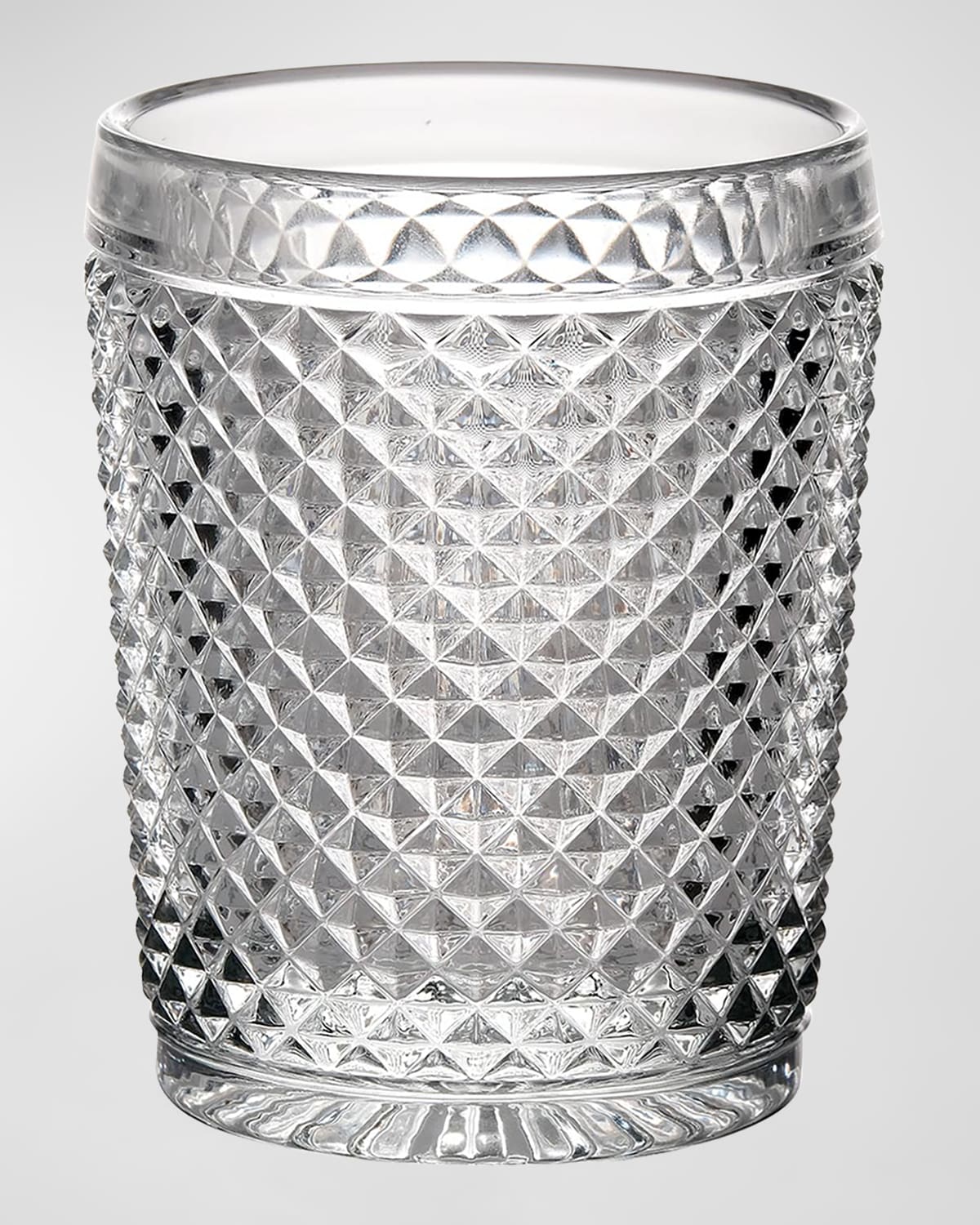 "Bicos" oldfashioned glasses are handmade one at a time by artisans using centuryold pressed glass techniques. Made of leadfree glass. Set of four. Each, 3.4"Dia. x 4.2"T; holds about 9.5 oz. Dishwasher safe. Made in Portugal.