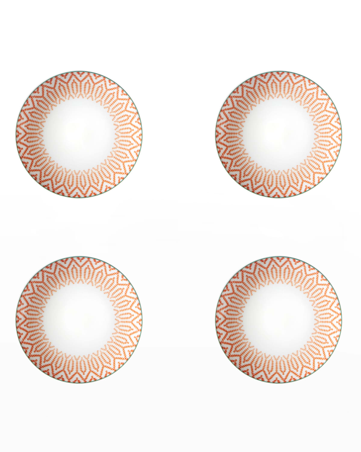 Set of four bread and butter plates. Made of porcelain. 7.95"Dia. x 0.83"T each. Microwave and dishwasher safe. Made in Portugal.