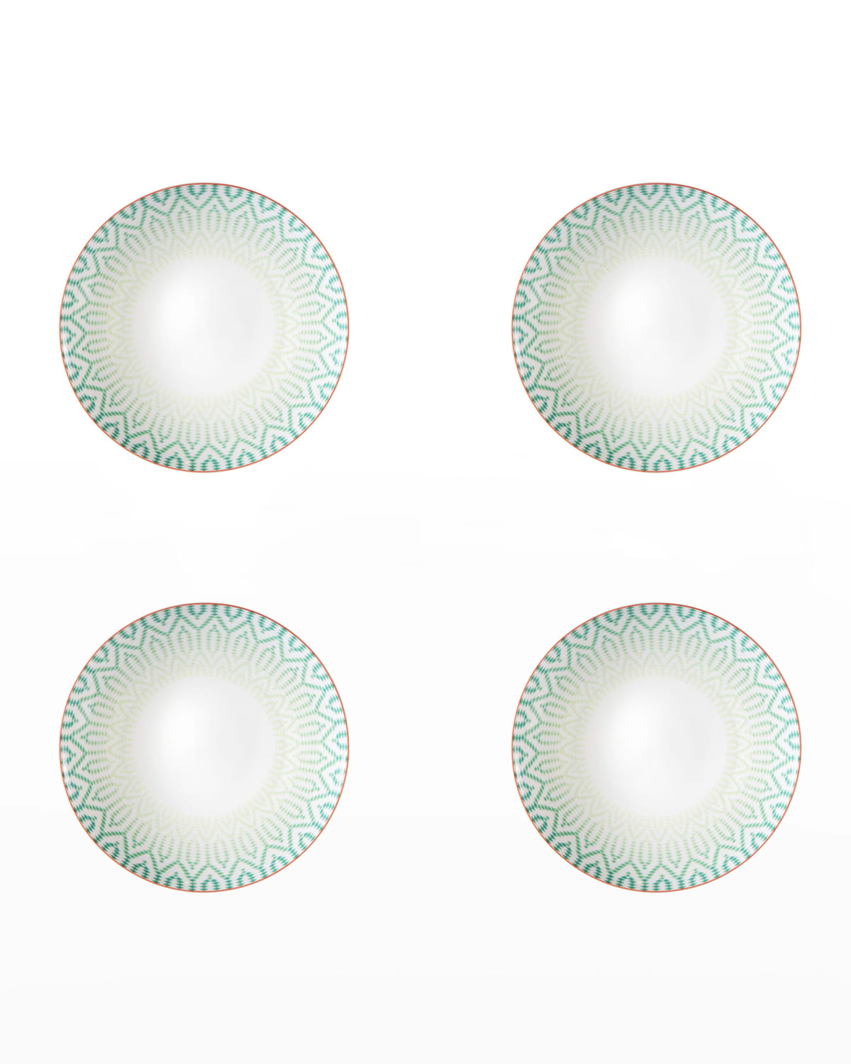 Set of four dinner plates. Made of porcelain. 10.94"Dia. x 1.3"T each. Microwave and dishwasher safe. Made in Portugal.