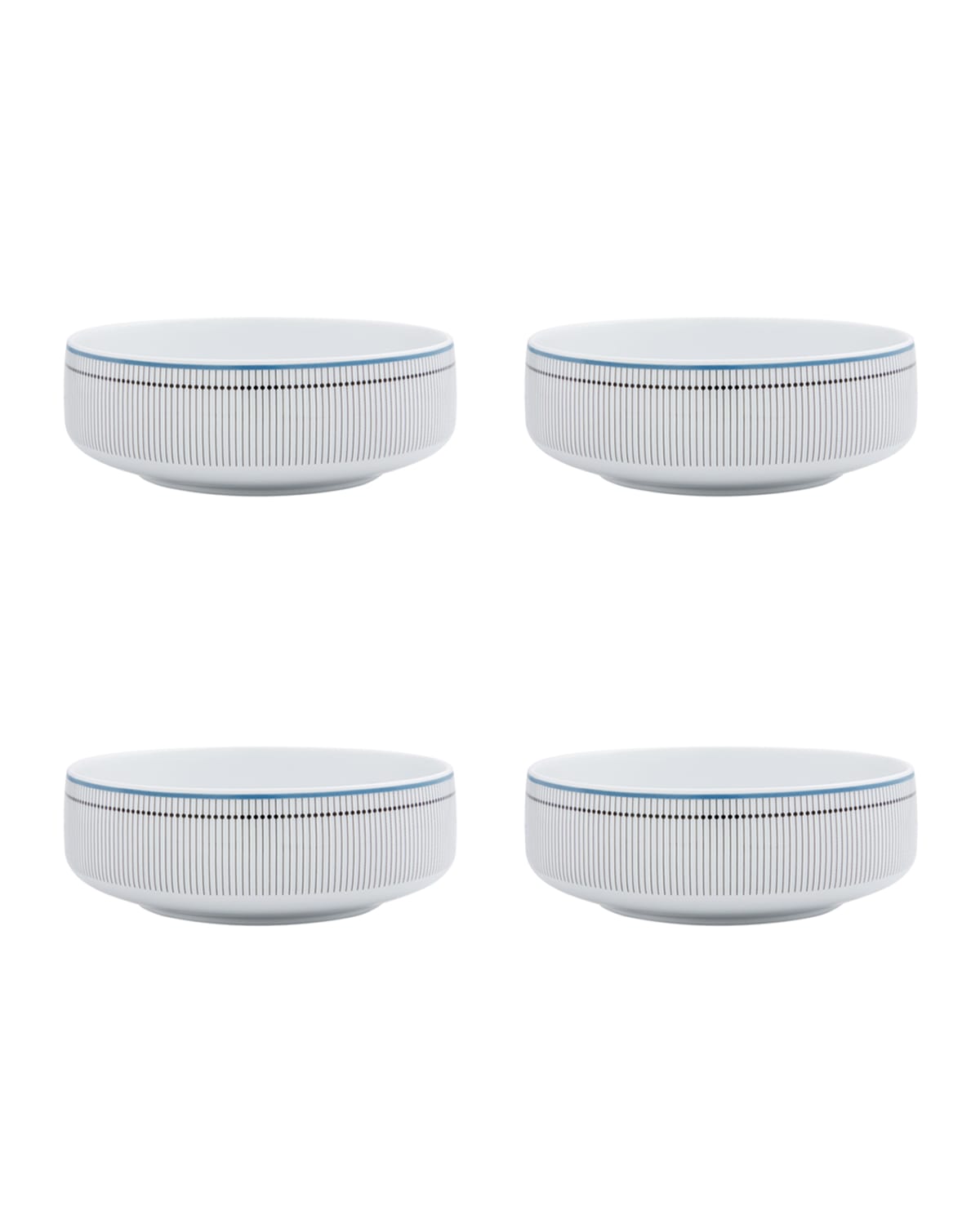 Set of four cereal bowls. Made of porcelain. Holds 16.375 ounces. 5.6"L x 1.8"T each. Microwave and dishwasher safe. Made in Portugal.