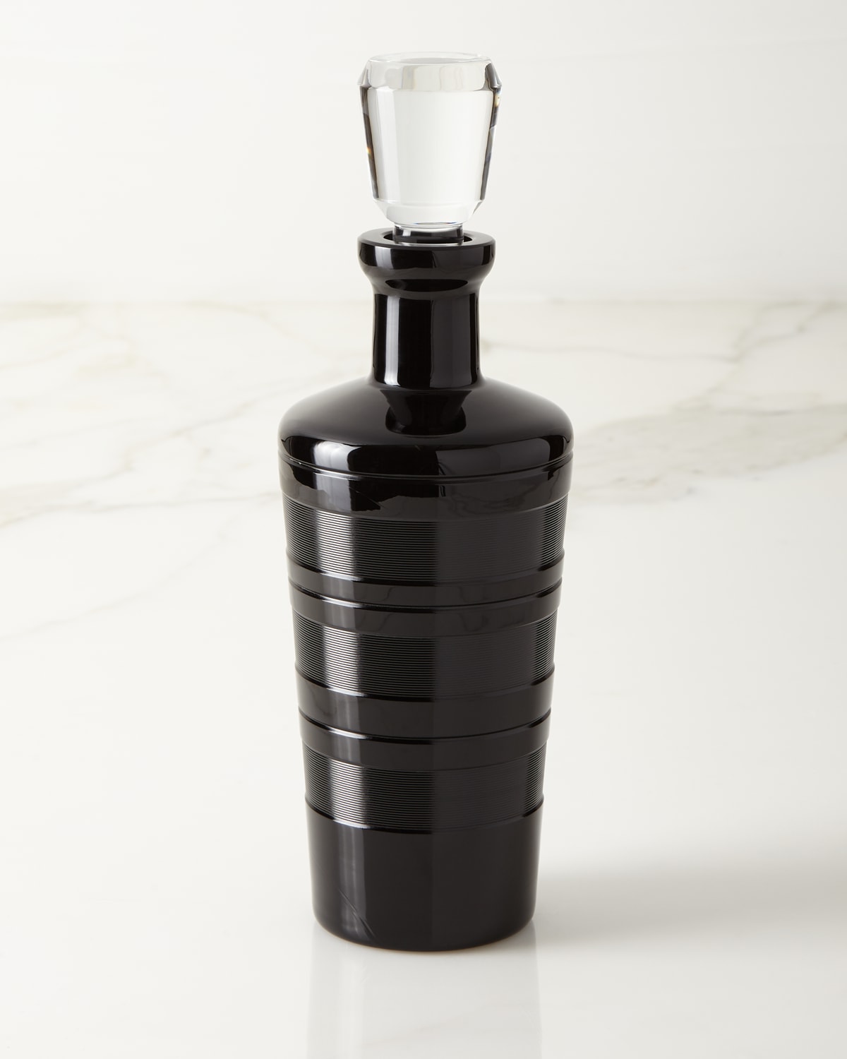Exclusively ours. Handcrafted decanter made of lead free black glass. Topper made of 30% lead crystal. Hand wash. Made in Portugal.