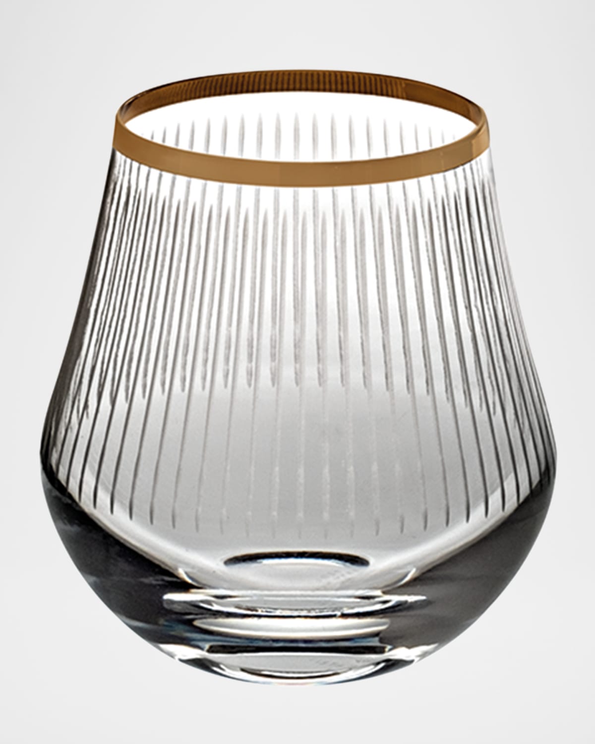 Winter Garden collection is inspired by neoclassical architectural elements, with its vertical matte cut suggesting pleats and draping "held in place" by a gold thread. An organic component of The Meaning collection, the Winter Garden set strikes a perfect balance between traditional distinction and contemporary simplicity. Handcrafted of leaded crystal Approx. 3.8"Dia. x 4.1"T Capacity, 14.5 fl. oz. Hand wash Made in Portugal