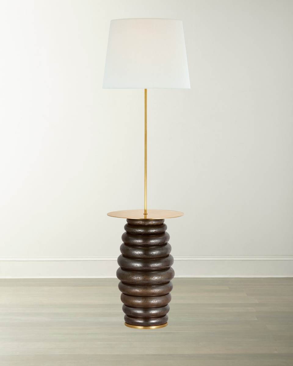 Dimmable lamp crafted of ceramic and linen Uses one 15watt bulb Approx. 21"Dia x 59.5"T Lampshade Dimensions: 16.8"W x 21"D x 14"T Cord length: 10 ft. UL listed Sold individually Wipe clean Imported Weight, 43.0 lbs Boxed weight, approximately 56.0 lbs