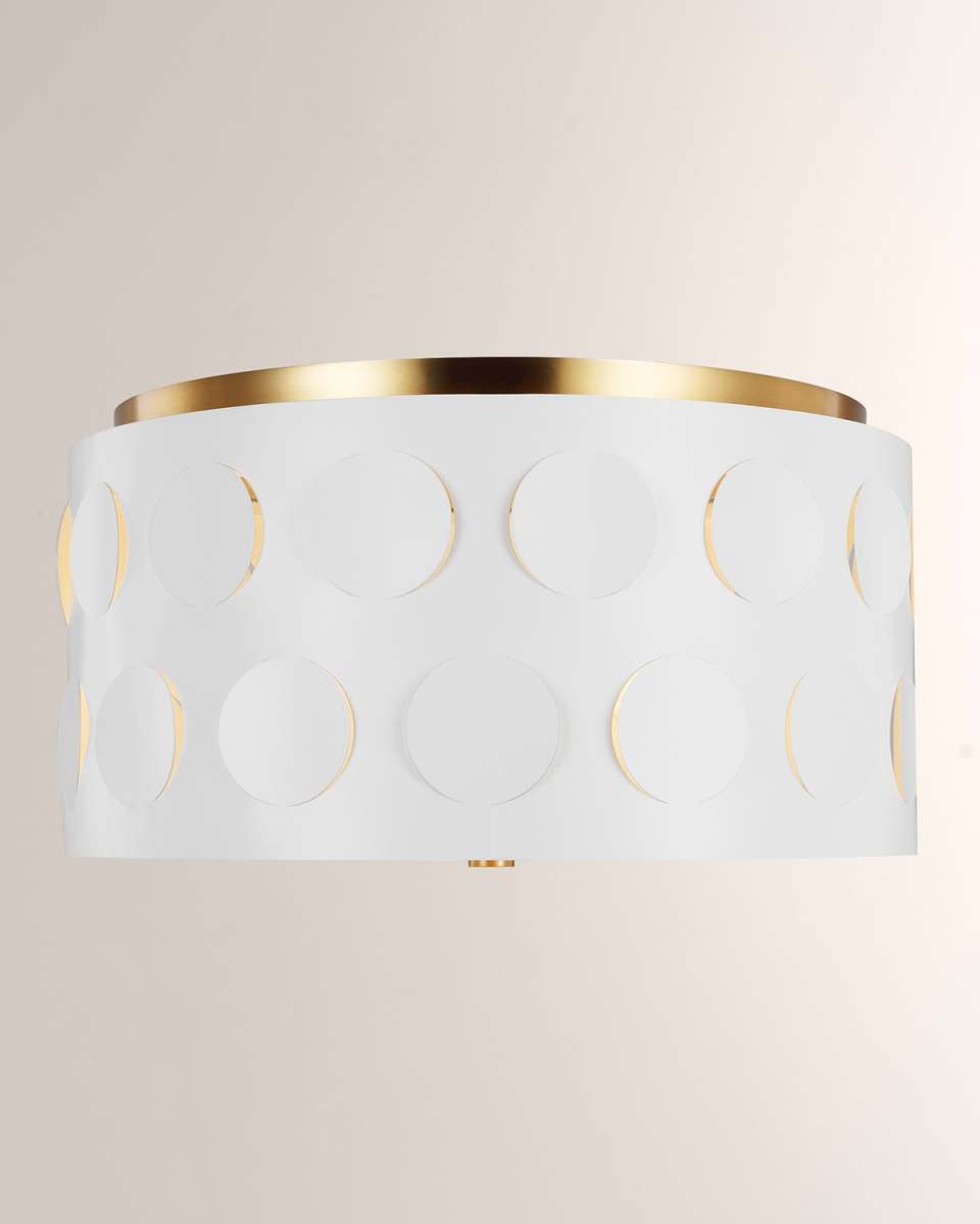 The intricate design of "Dottie" series is a fun way to shine a light on the iconic kate spade design element. Flush mount is made of steel Uses three 60watt bulbs Approx. 17.9"Dia x 9.6"T Lampshade dimension: 17.6"Dia Chain length: 6 ft. chain, 10 ft. wire Cord length: 6 ft. UL listed Sold individually. Includes hanging hardware Professional installation is recommended Wipe clean Imported Weight, 18.0lbs Boxed weight, approximately 21.5lbs