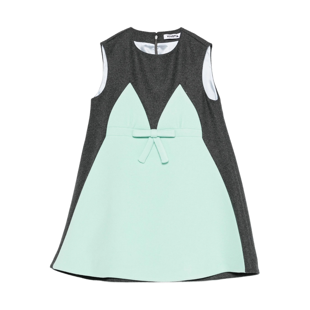 green sleeveless design bow detail v-neckline