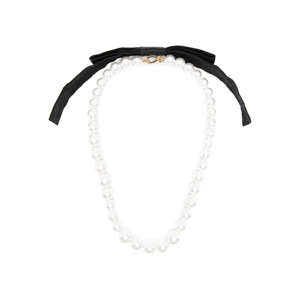 white bow detail pearl detailing gold-tone hardware clasp fastening