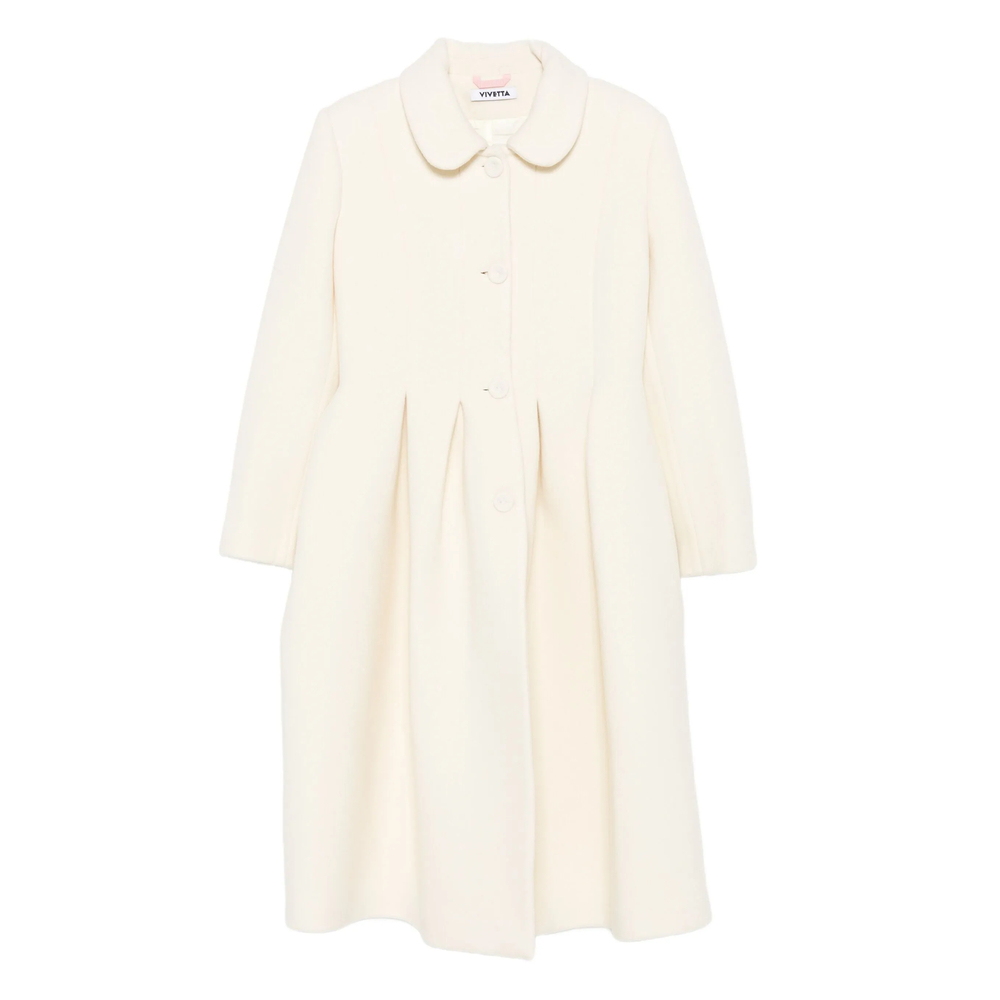 off-white Peter Pan collar pleated waistline button fastening long sleeves