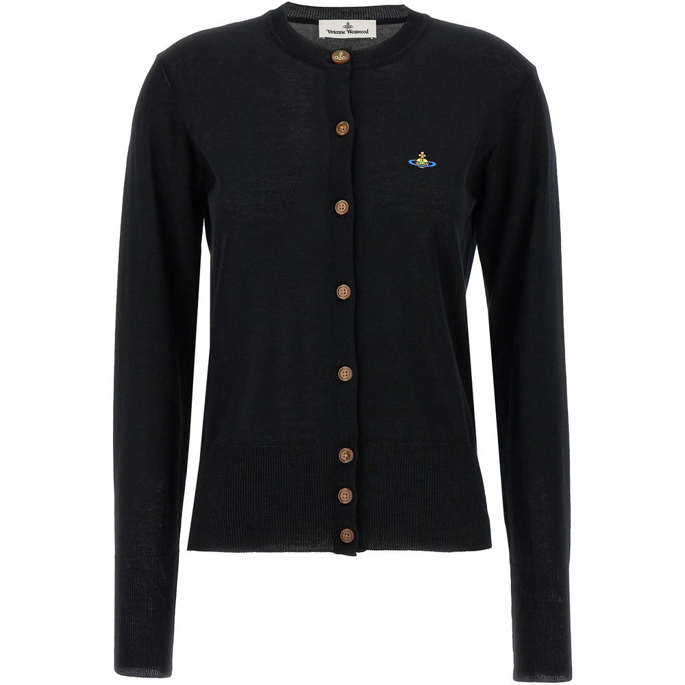 black front button fastening crew neck embroidered logo at the chest ribbed cuffs and hem