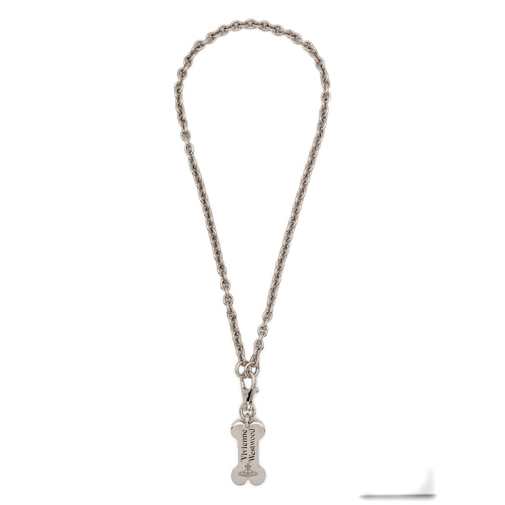 silver-tone bone pendant chain-link detailing lobster clasp fastening engraved logo