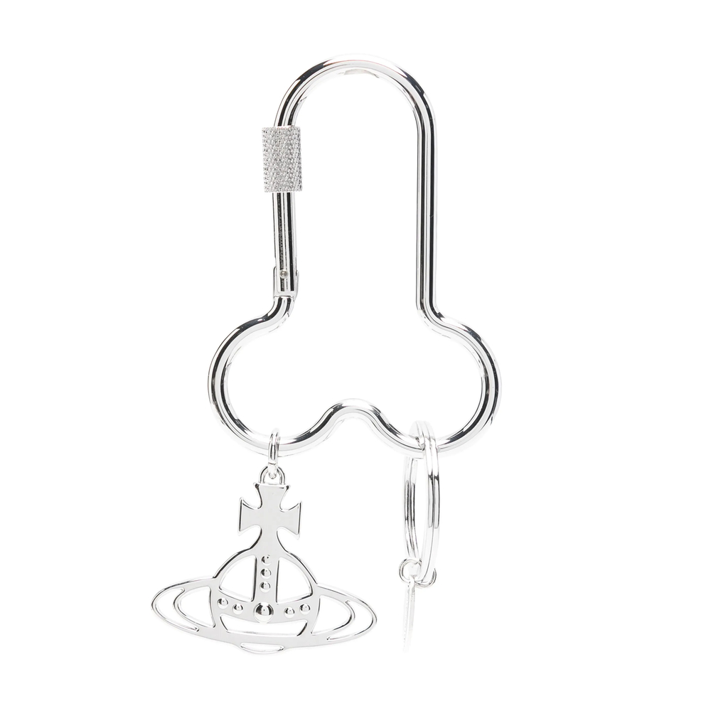 silver-tone metal polished finish signature Orb plaque detail engraved logo keyring attachment carabiner fastening